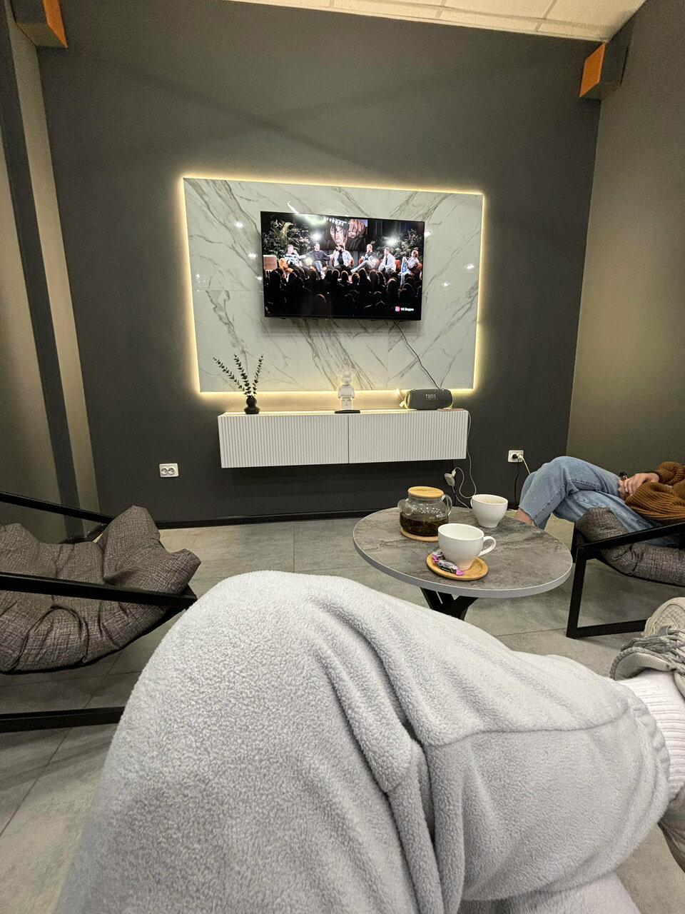 - Комфортная зона ожидания (диван, приставка)