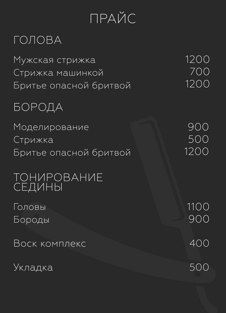 Скачать прайс-лист Барбершоп на ноябрь 2025 года