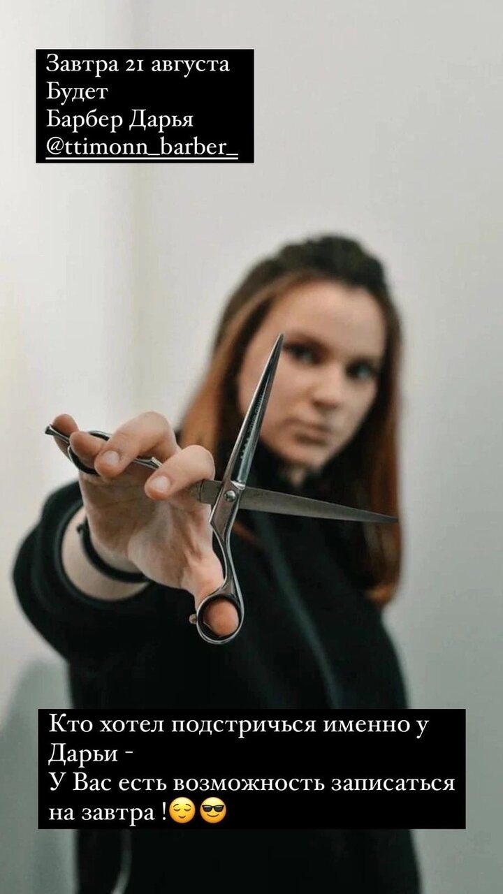 Спасибо барберу Дарье, за превосходную стрижку и сногсшибательное обслуживание✅
