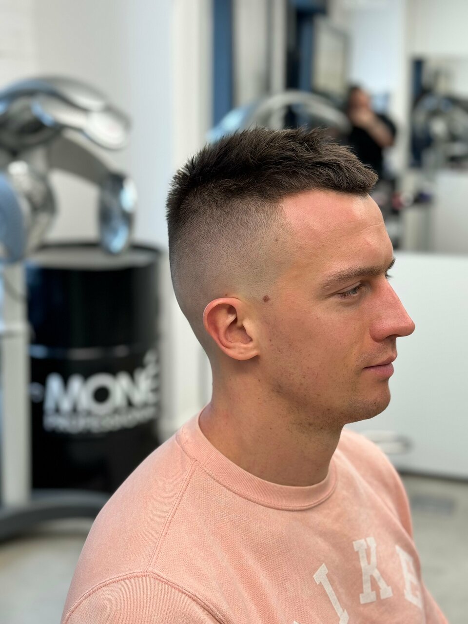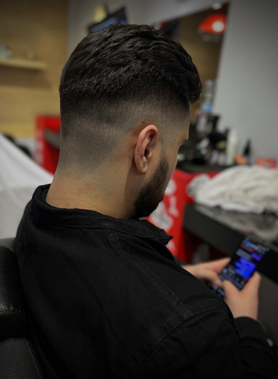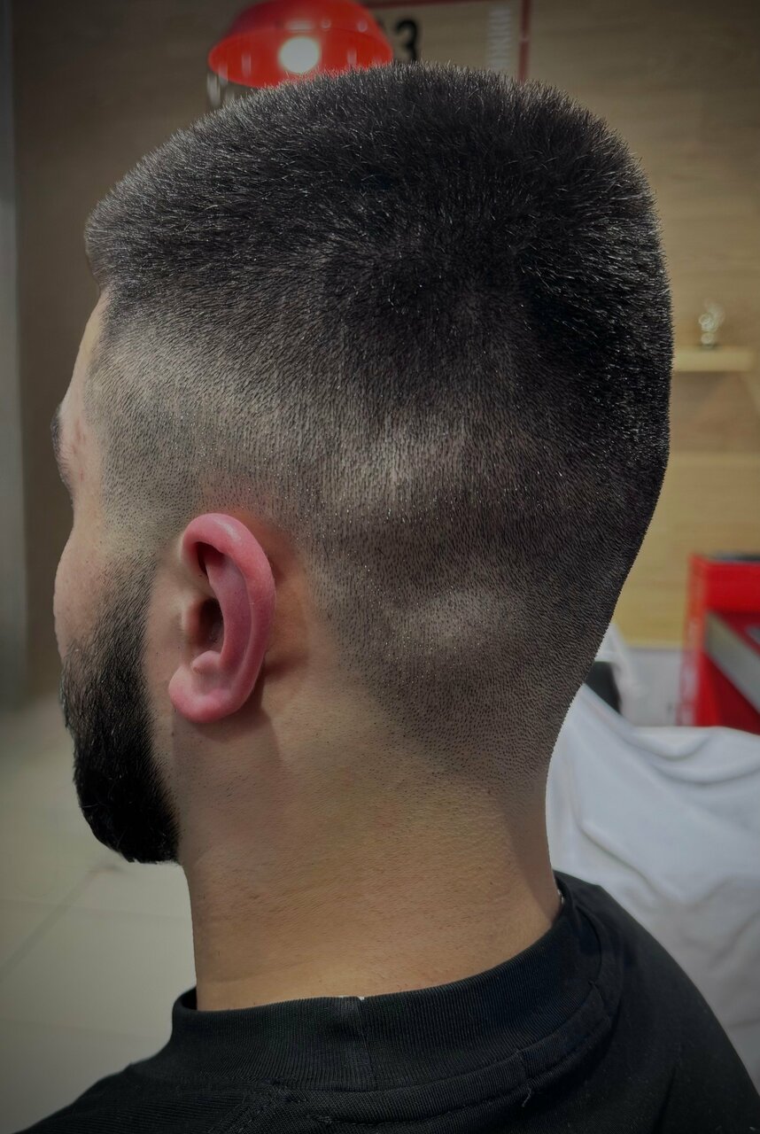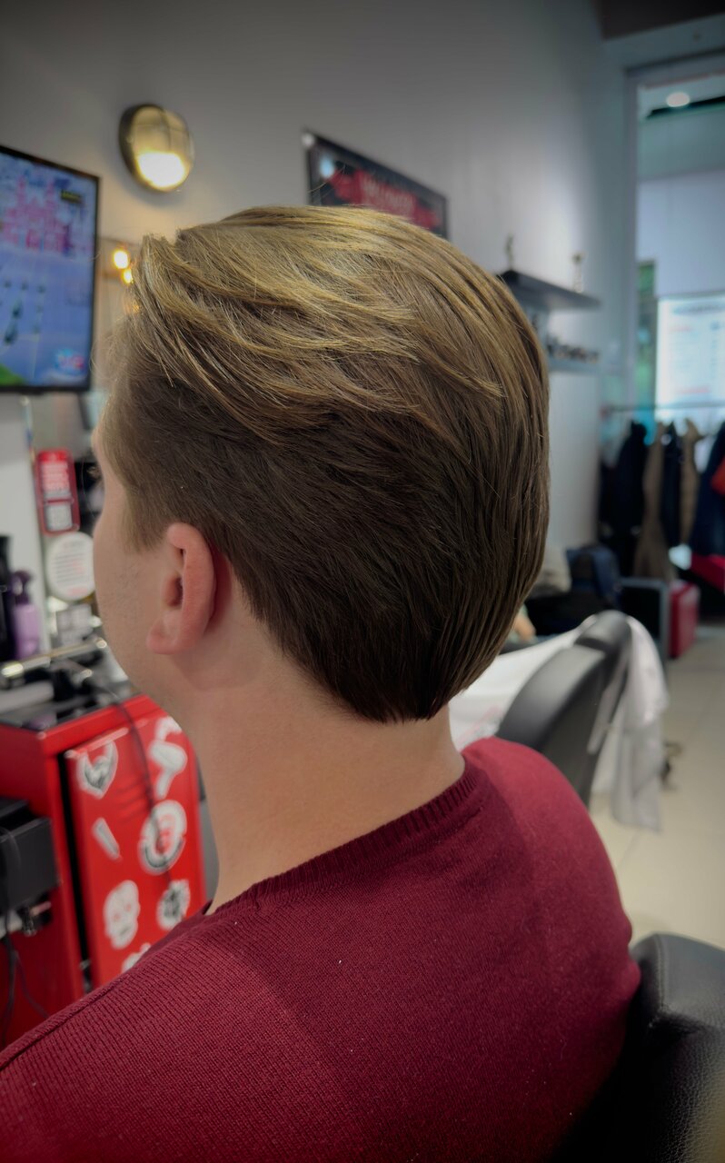 Стрижка машинкой с использованием насадок, без использования ножниц.(в данной варианте стрижки не используется техника fade)Включает в себя мытье головы до и после стрижки, укладку профессиональным стайлингом.