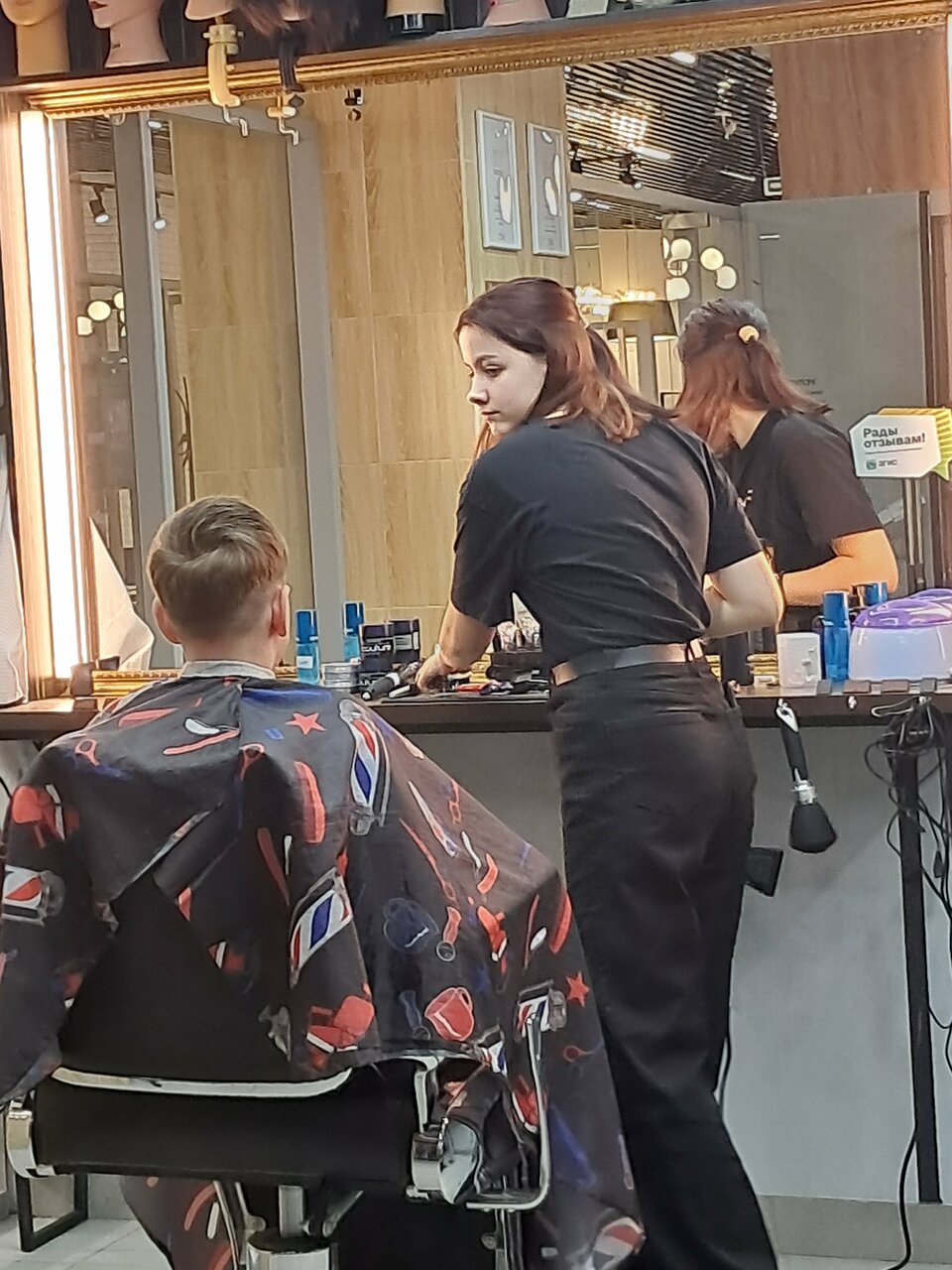 Отличный опыт! Они оба были очень дружелюбны, особенно Алина, место было чистым и расслабляющим, и моя стрижка получилась именно такой, как я хотел. Они даже дали мне конфету — такой приятный штрих! Очень рекомендую за качественное обслуживание в уютной обстановке.