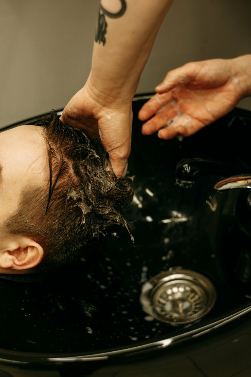 Включает в себя мытье головы до и после, стрижку с использованием ножниц и машинки, а также укладку. Стрижка подходит обладателям от коротких до волос средней длины.