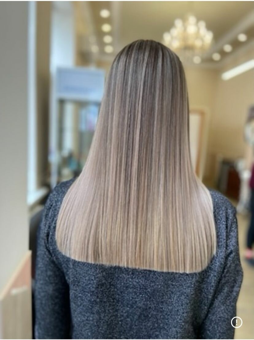 Это щадящая процедура, которая придаёт волосам глубину и сияние, выравнивая оттенки и создавая плавный переход цвета. Часто используется для растяжки цвета — от корней к кончикам — чтобы добиться естественного, мягкого градиента без резких линий. Так