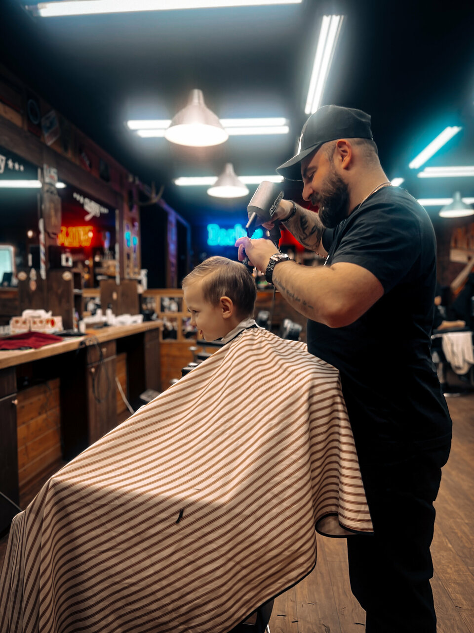 Отличный барбершоп с прекрасной атмосферой и барберами! Сын 6 лет с удовольствием ходит теперь стричься