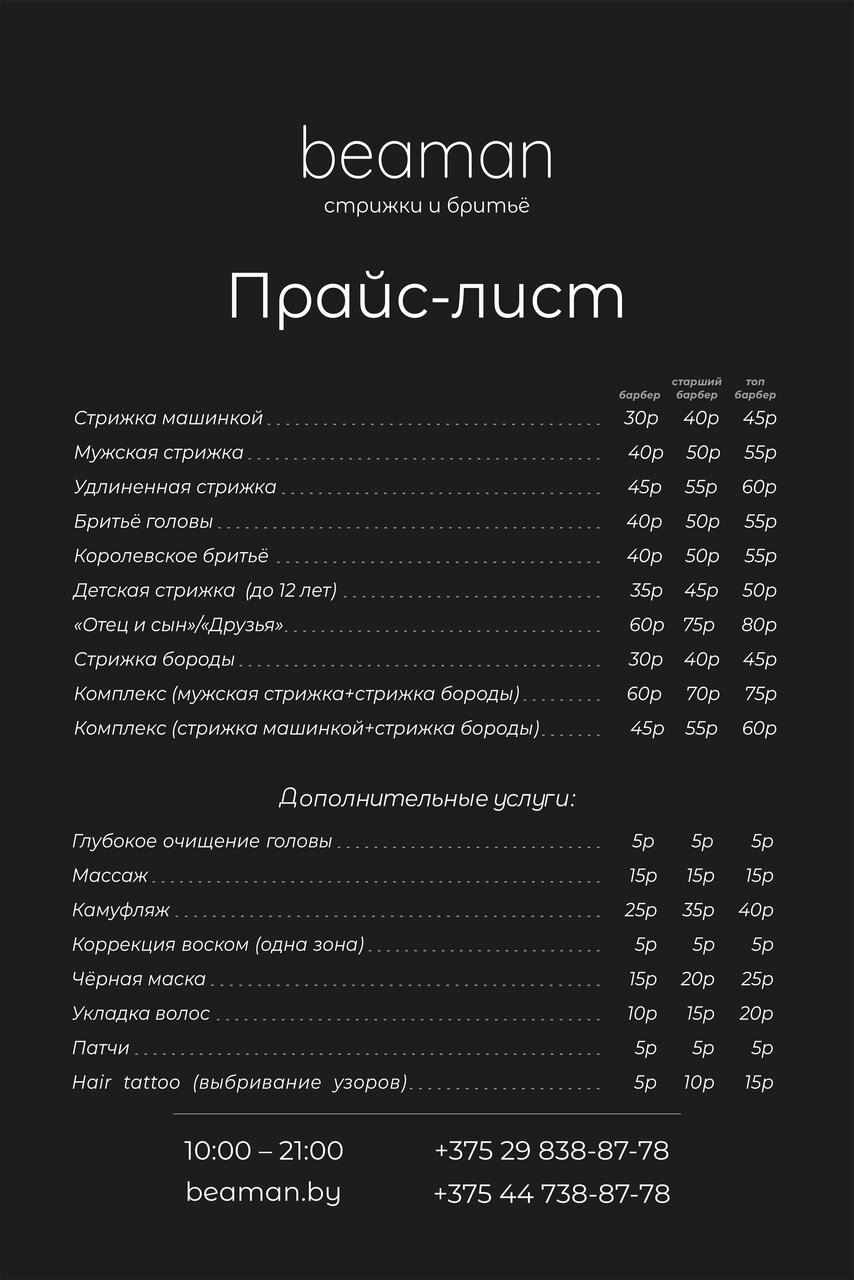 Информация о барбершоп Beaman в Барановичах актуализирована в ноябре 2025 года: