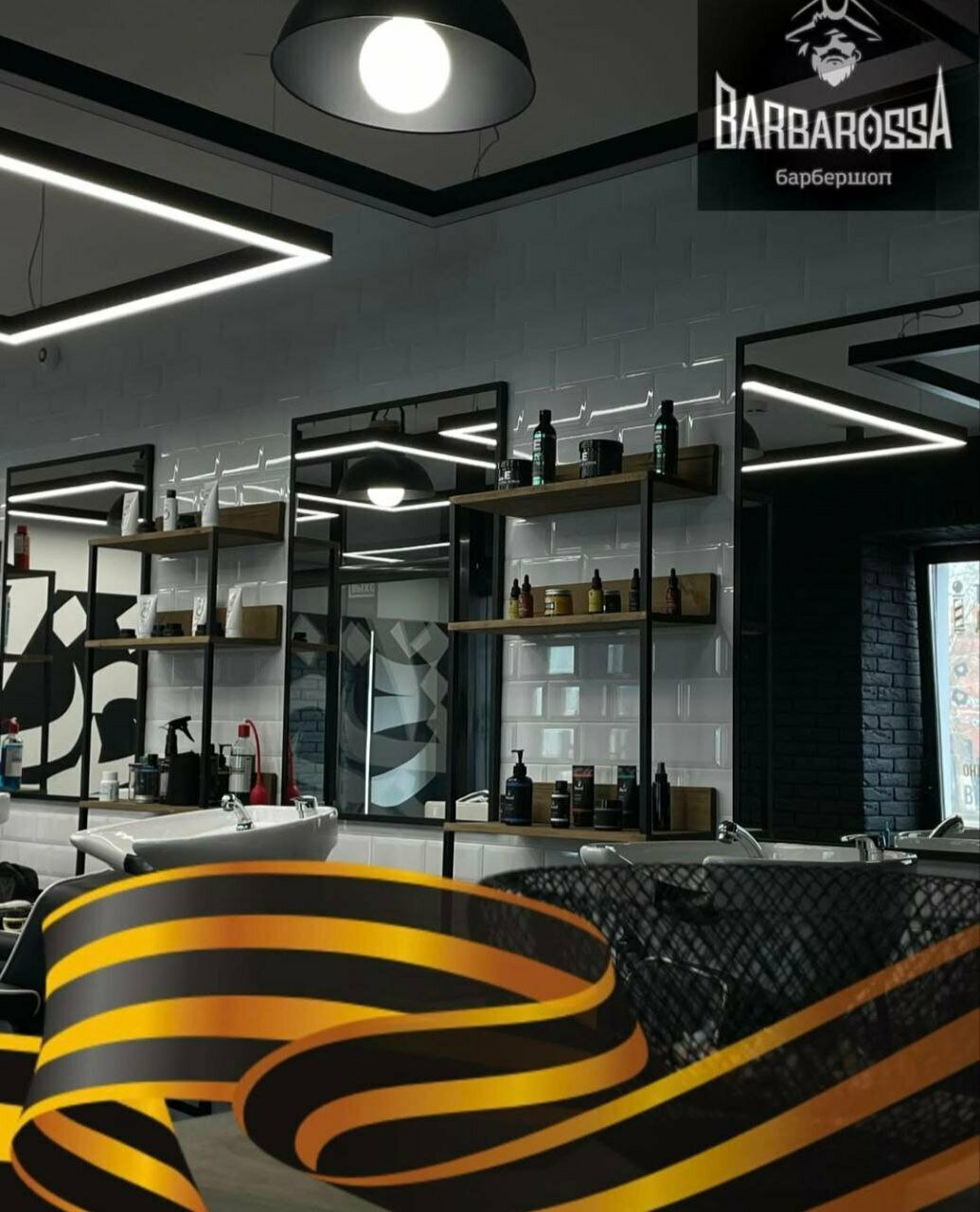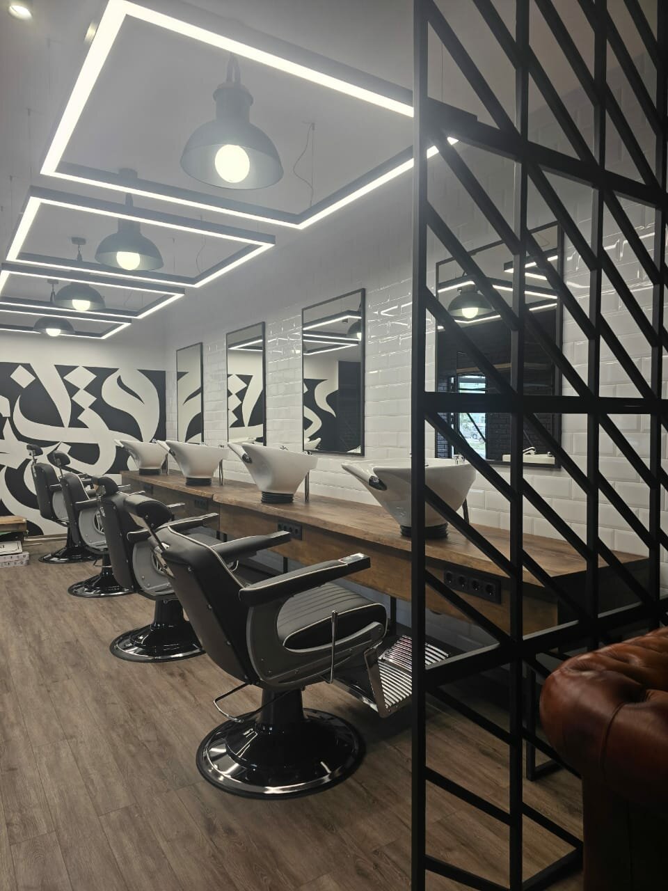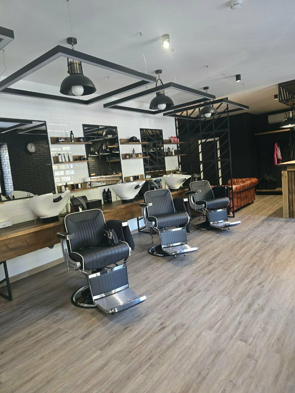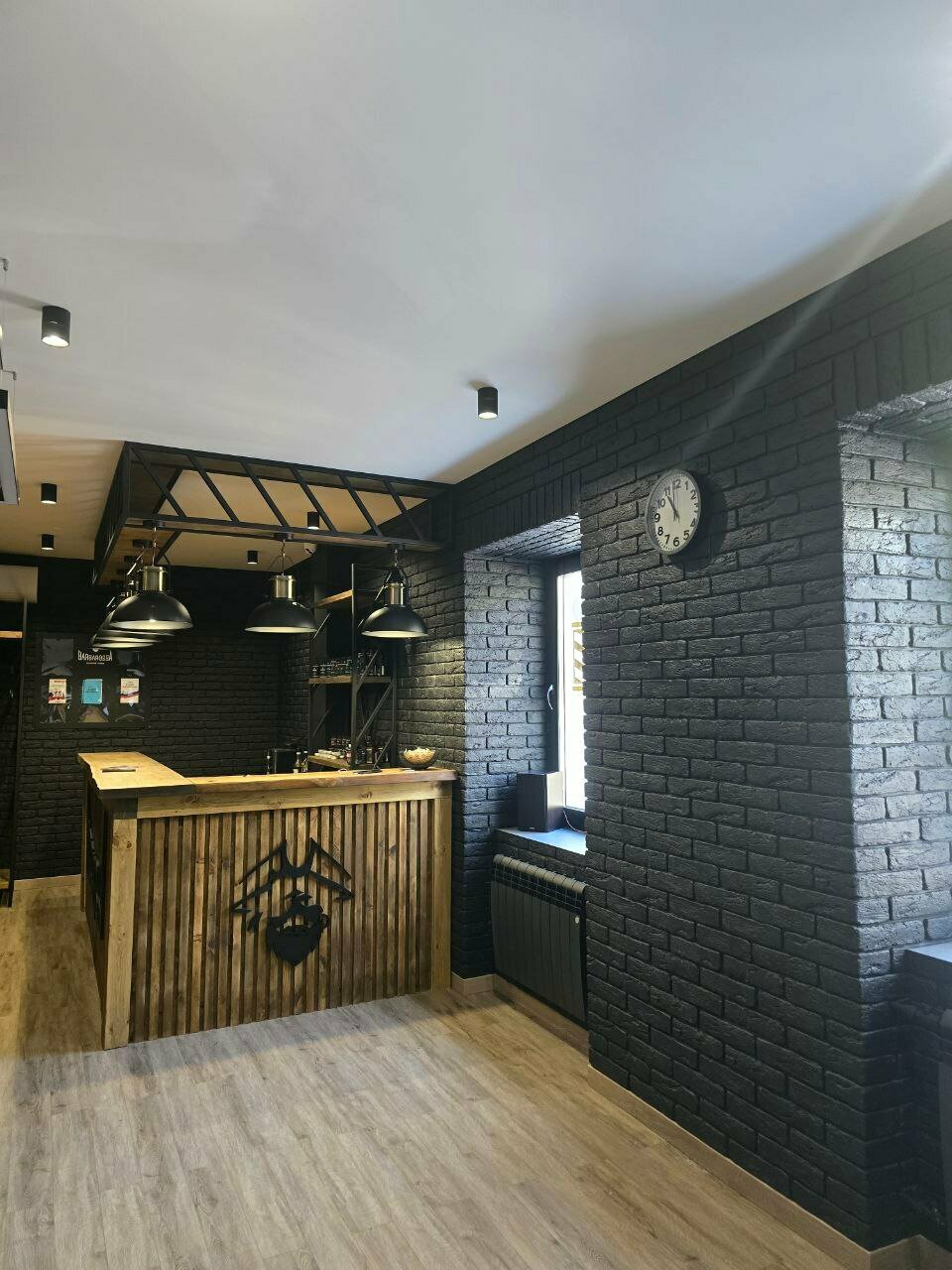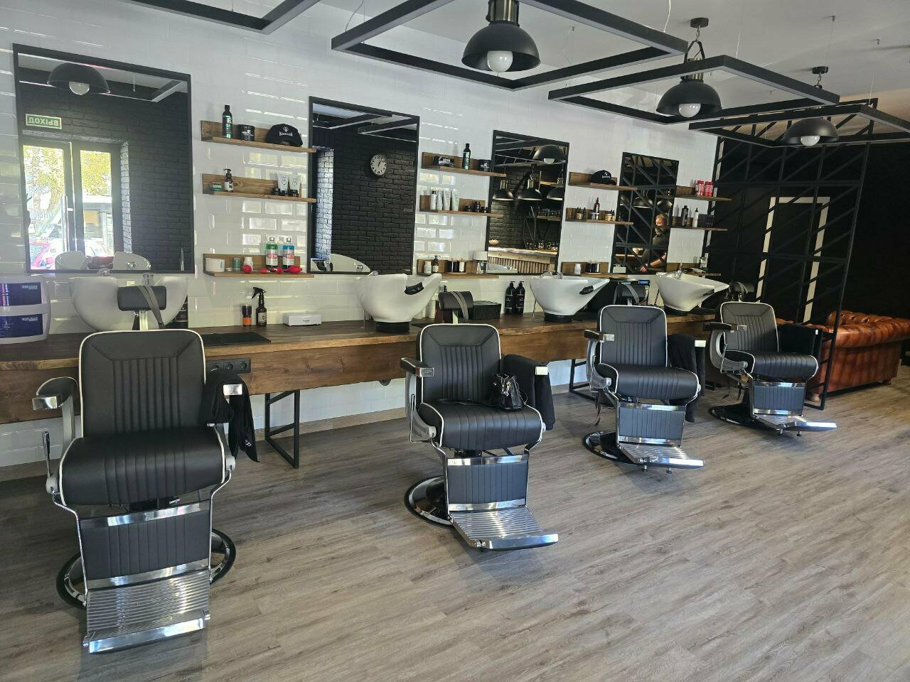 Всё чисто, уютно. Очень красивый интерьер. Видно что барберы работают не первый день и действительно проффесионалы, также трудно не упоминуть очаровательного администратора Снежану, очень подкупает своей обоятельностью