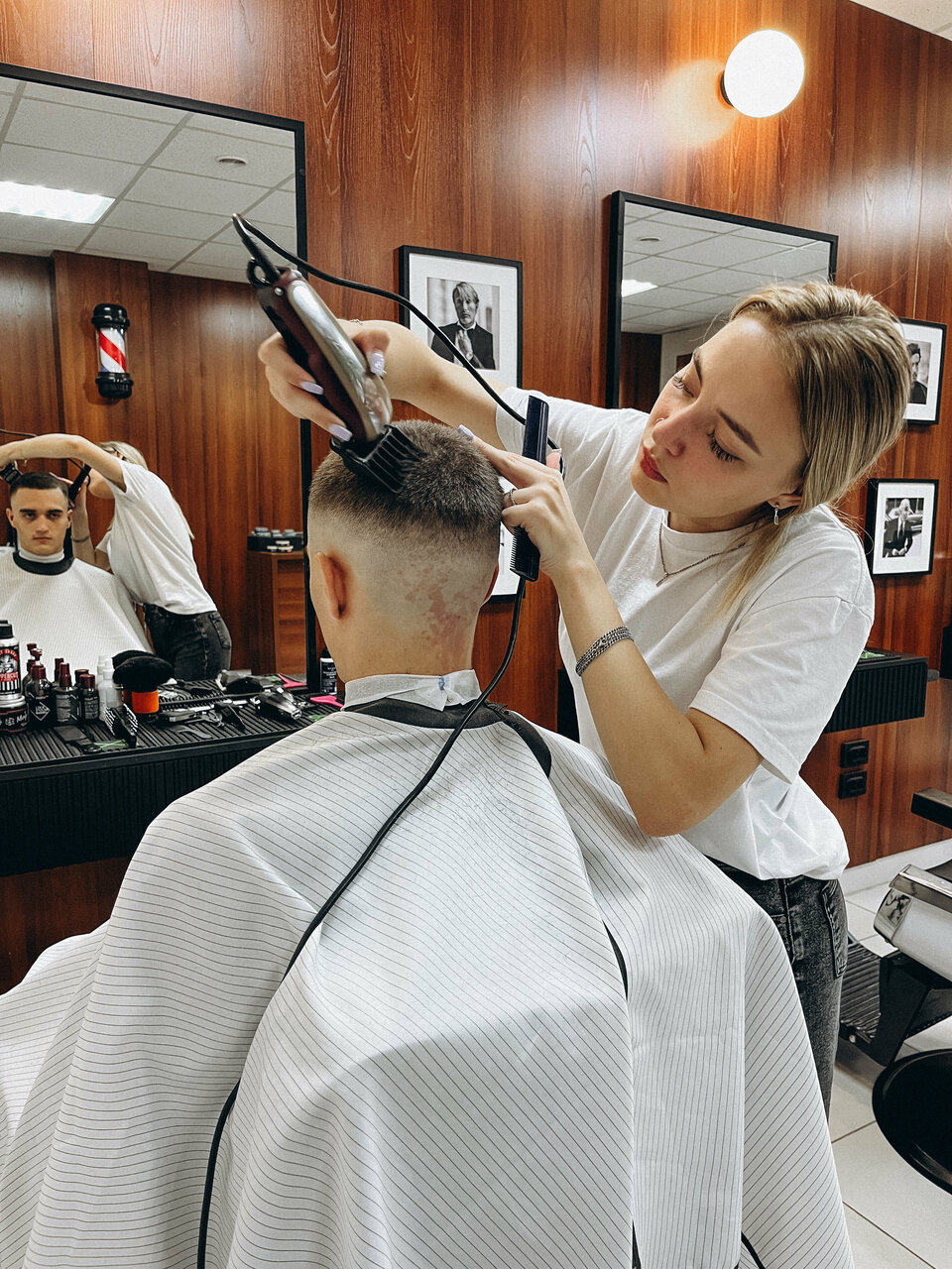 Барбершоп Chop X Chop в Барнауле является специализированным салоном, ориентированным исключительно на мужчин. Здесь создается уютная атмосфера, напоминающая мужскую гостиную или ретро-стиль, что делает каждое посещение приятным и расслабляющим опытом. Помимо классической стрижки, салон предоставляет полный спектр услуг по уходу за бородой и усами, включая моделирование и бритье горячим металлическим лезвием.