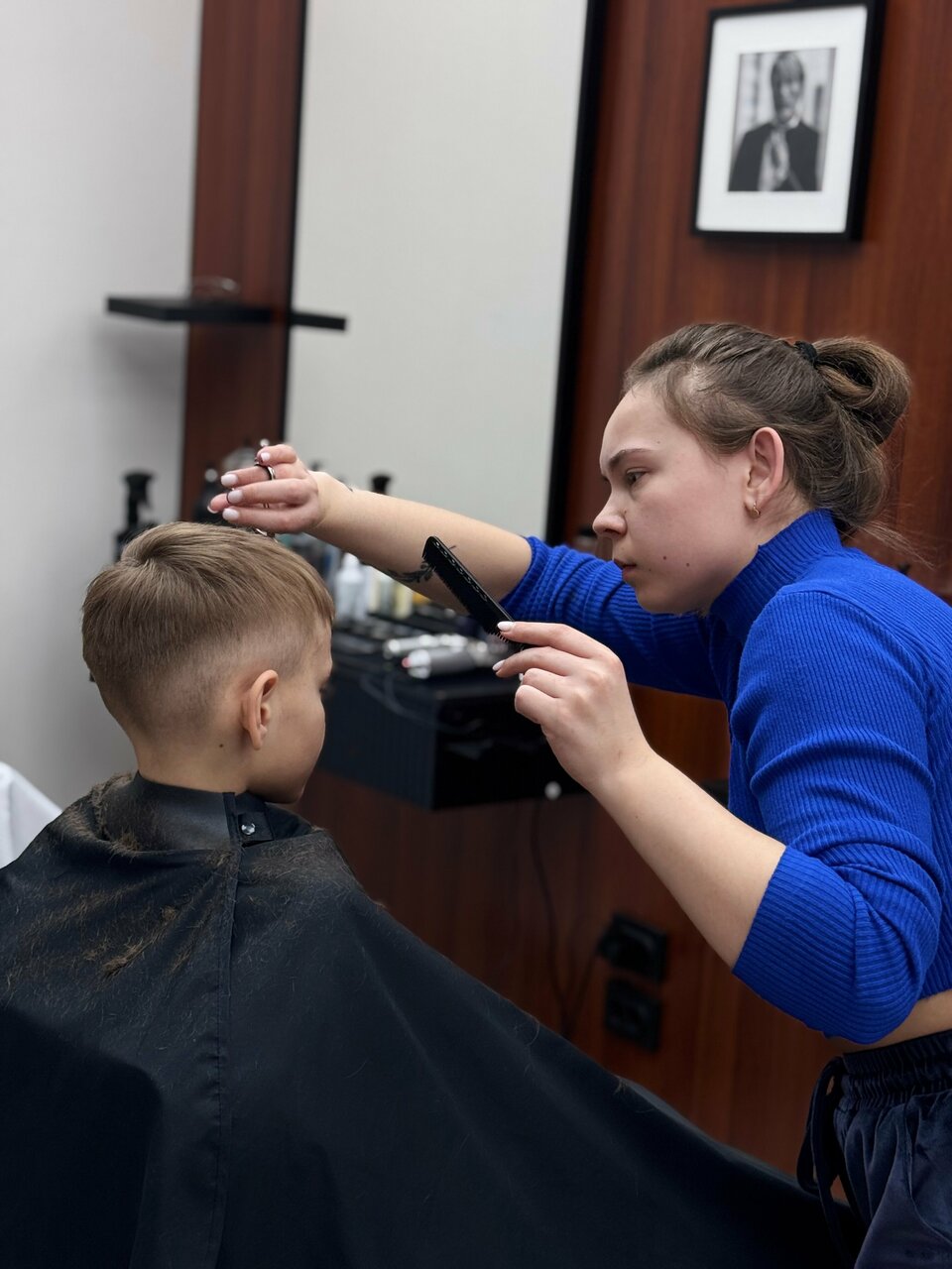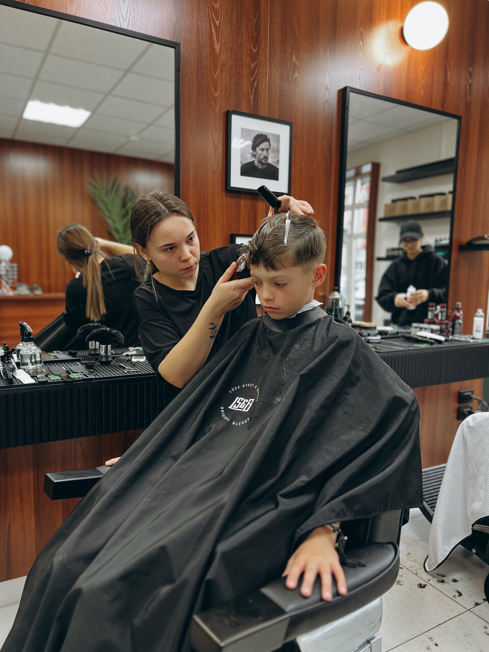 Ходили с сыном и мужем. Оба подстригались. Мастера Анастасия и Ульяна большие специалисты,как в профессии ,так и в общение с детьми☺️ Администратор очень приветливая. Атмосфера приятная и спокойная. Не похоже на другие барбершопы в которых были,однозначно по всем пунктам 5 Место куда хочется вернуться снова и снова)