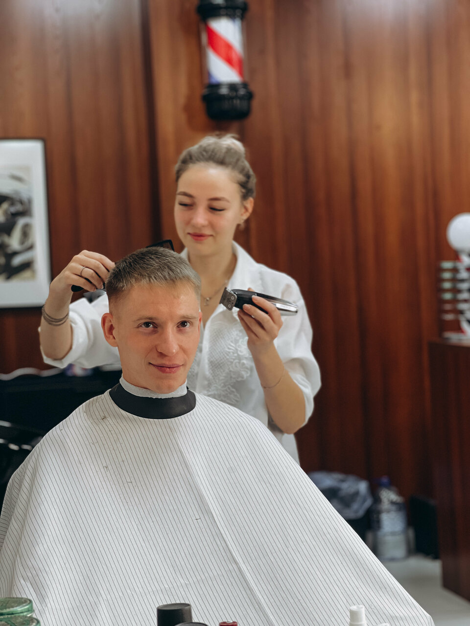Подстригли быстро, красиво. Атмосфера классная, в помещении приятно. Персонал приятный, доброжелательный. На первое посещение сделали скидку. Спасибо за работу, приду ещё!