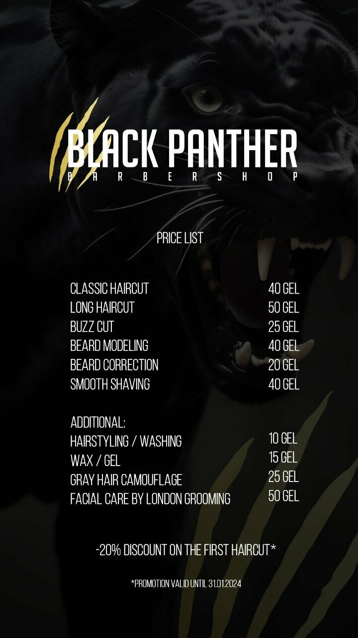 Барбершоп Black Panther Batumi — это специализированный салон для мужчин, расположенный в Батуми по адресу: улица Шерифа Химшиашвили, 4. Он предлагает полный спектр услуг, ориентированных на создание и поддержание мужского стиля. Помимо классической стрижки, здесь профессионально ухаживают за бородой и усами, выполняют бритье горячим лезвием и другие мужские процедуры.