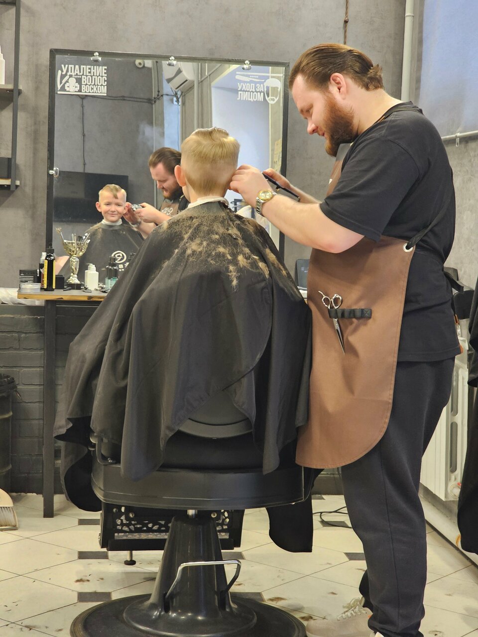 Лучший барбершоп города. Ходим с сыном только к ним на протяжении года. Нравится абсолютно все, атмосфера, персонал, качество стрижки и цены