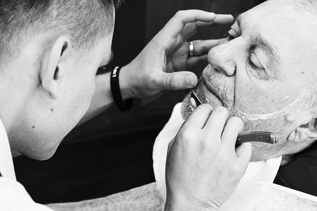С распариванием и бритьем опасной бритвой