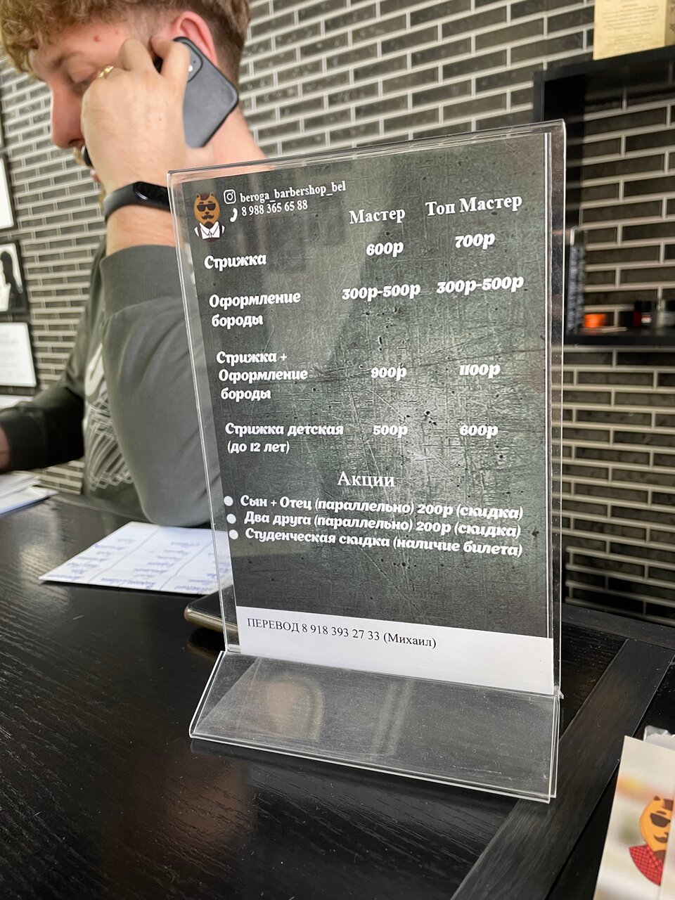 Хороший Барбер, очень красиво, приятно находиться. Ещё бы, выски наливали как доп. услугу было вы, вообще огонь.