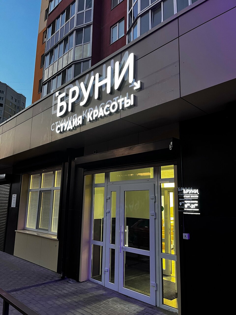 Коррекция нарощенных ногтей Салон красоты 'Бруни' удобно расположен в центре Советского района, по адресу Костычева 86, Рядом со старым аэропортом. Мы работаем ежедневно с 09:00 до 21:00.