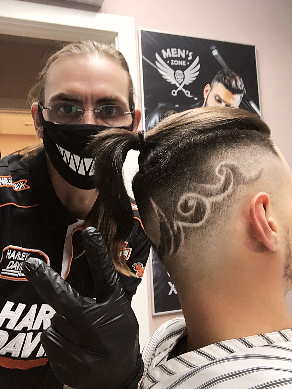 Красиво. Это единственный плюс в данном месте,мастер может покурить перед работой и не помыв руки оставляя неприятный запах, и также без обработки инструментов, как будто собак стригли а не людей.