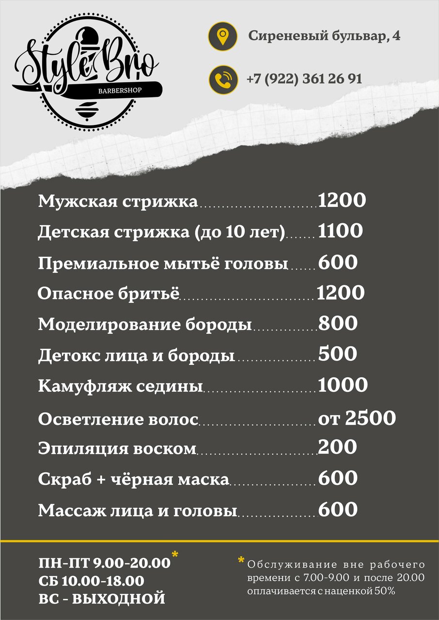 Информация о барбершоп Style Bro в Чайковском актуализирована в ноябре 2025 года: