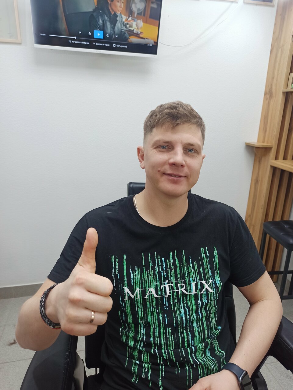 - Возможность посмотреть фильм во время стрижки.