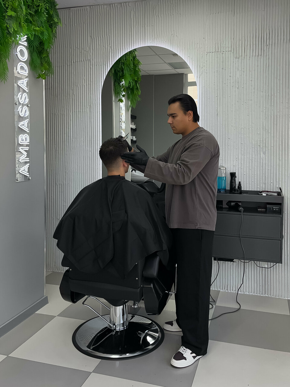 Отличный барбер, с детьми находит общий язык, старательно и аккуратно стрижет, много знает и много рассказывает про уход. Подбирает индивидуально средства по уходу за волосами. Также, что для меня не маловажно, работает в перчатках и обрабатывает все инструменты. Рекомендую к посещению, теперь, наконец то у нас не будет проблемы « куда идти стричься» — на пирогова 1/4) в Амбассадор