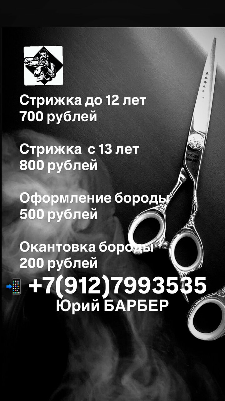 Барбершоп работает ежедневно с 10:00 до 20:00. Для записи и уточнения информации можно позвонить по телефону +7 (912) 799-35-35.