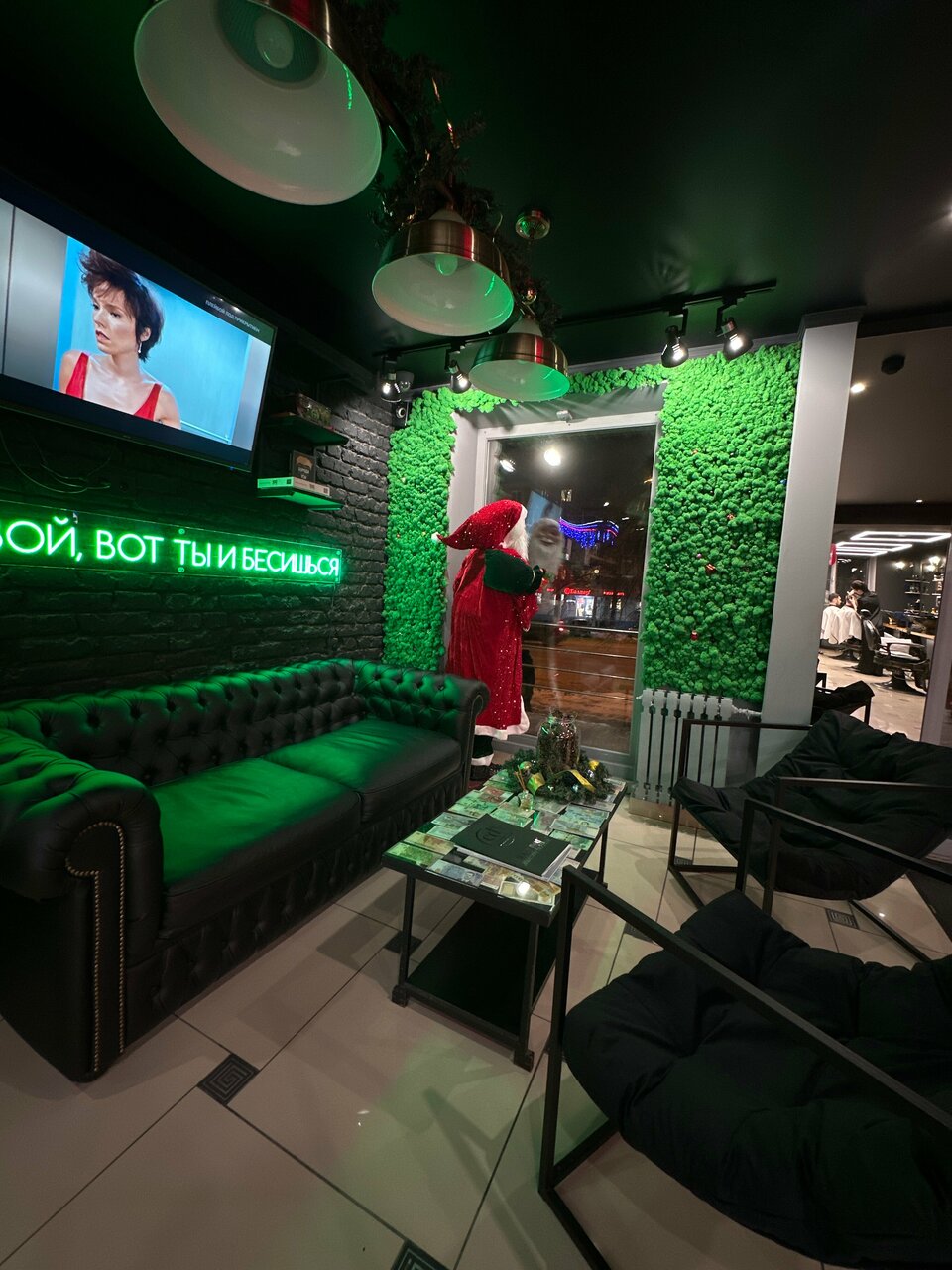 - Мастера-профессионалы, знают свое дело; Персональные мойки для головы перед зеркалом; Отличная атмосфера и сервис; Интересный интерьер; Световые надписи на стене, фото-зона.
