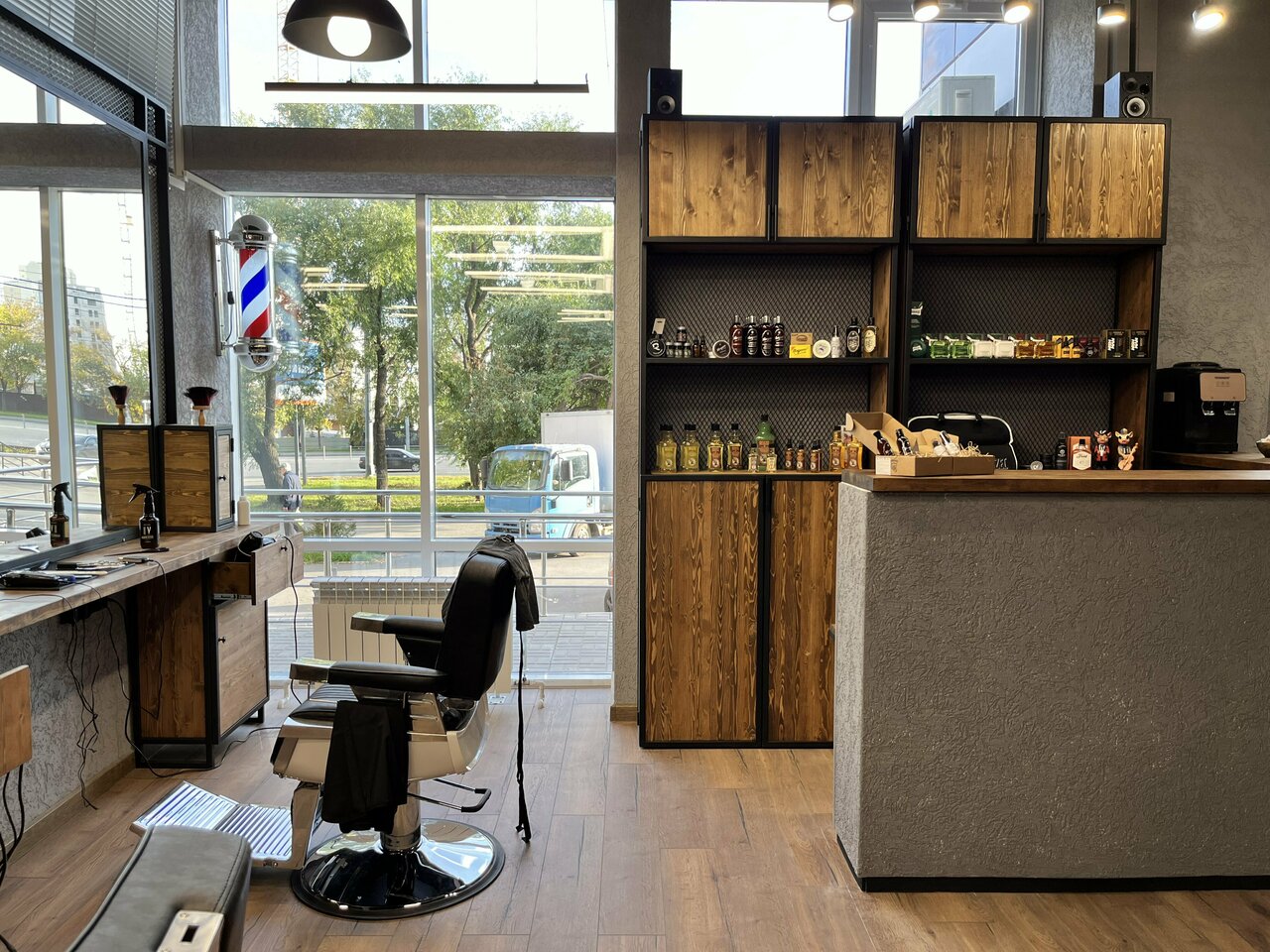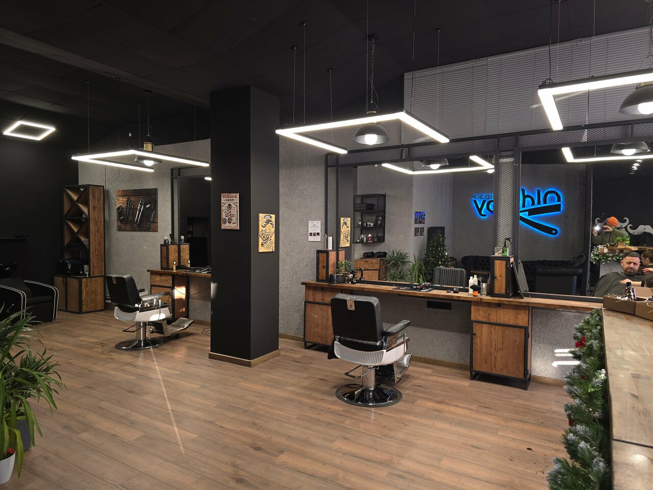 Снаружи и внутри барбершоп красивый ! Мужу понравилось стричься там Спасибо, что есть такое прекрасное заведение в нашем городе
