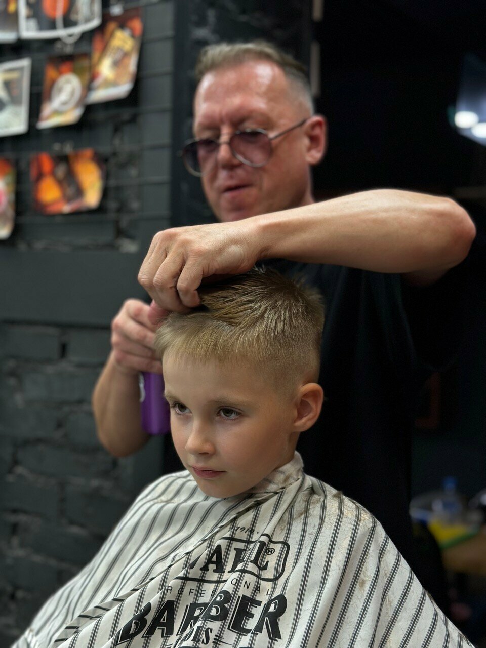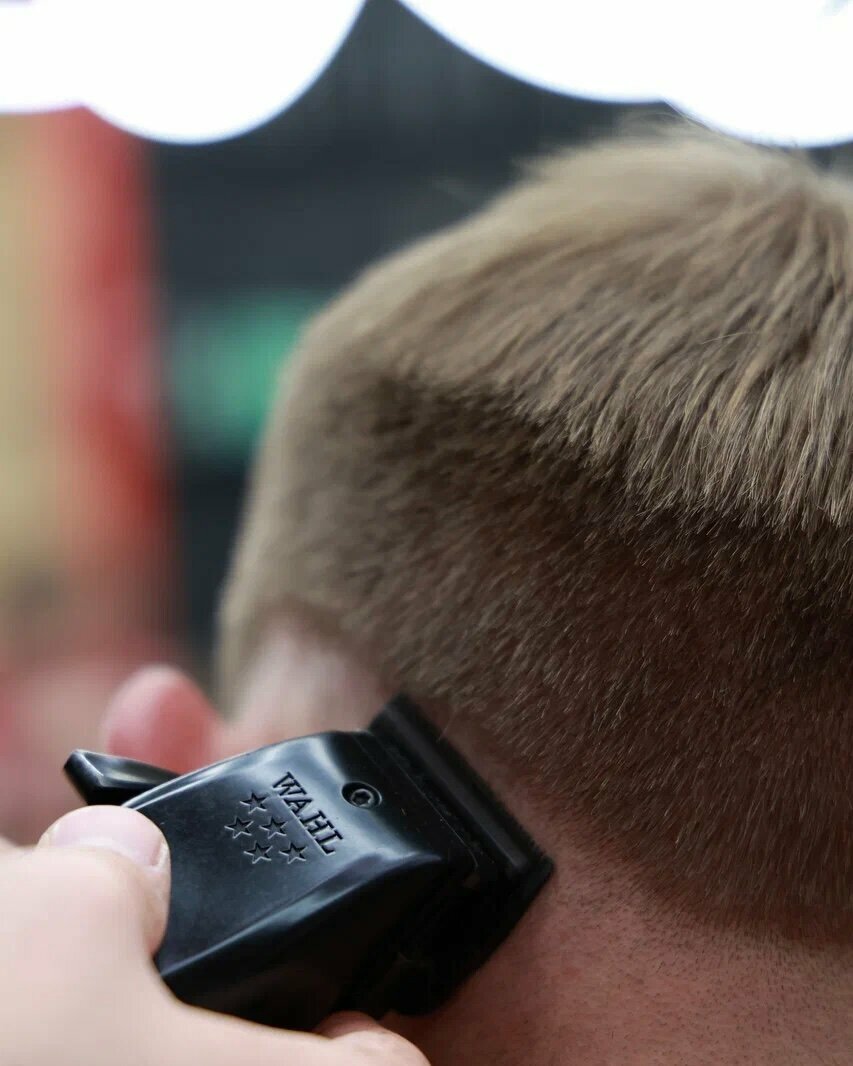 Стрижка выполняется исключительно машинкой, с применением не более двух насадок. Стрижка выполняется шейвером, в случае, если требуется стрижка 'наголо'. Стрижка по технологии Fade не относится к данной услуге.
