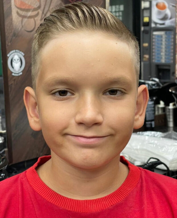 Процедура стрижки для детей от 7 до 12 лет. Включает в себя мытье головы, стрижку ножницами, машинкой, укладку стайлинговыми средствами. Все манипуляции с ребенком происходят только по согласованию с родителями.