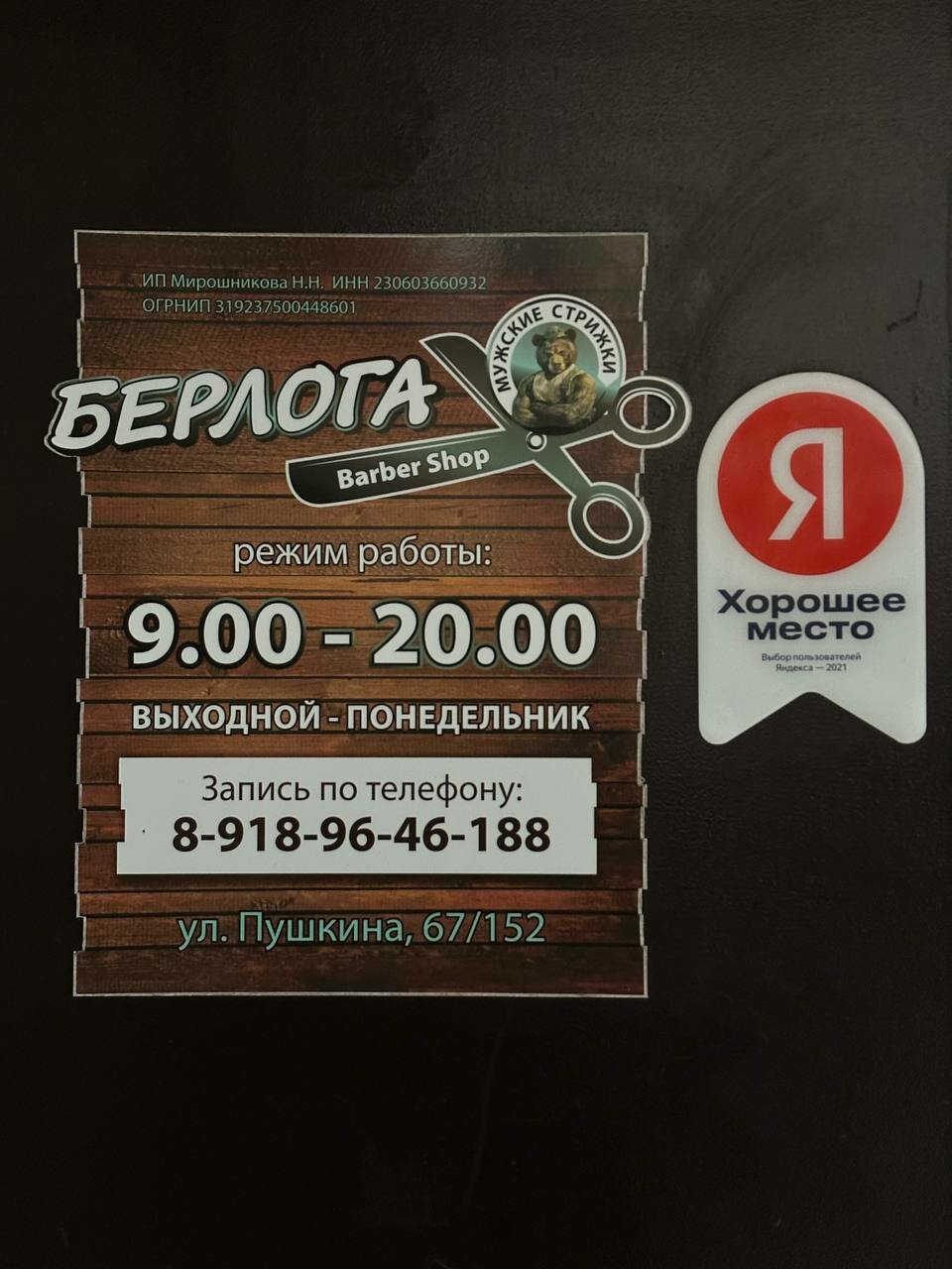 Информация о барбершоп Берлога в Ейске актуализирована в ноябре 2025 года: