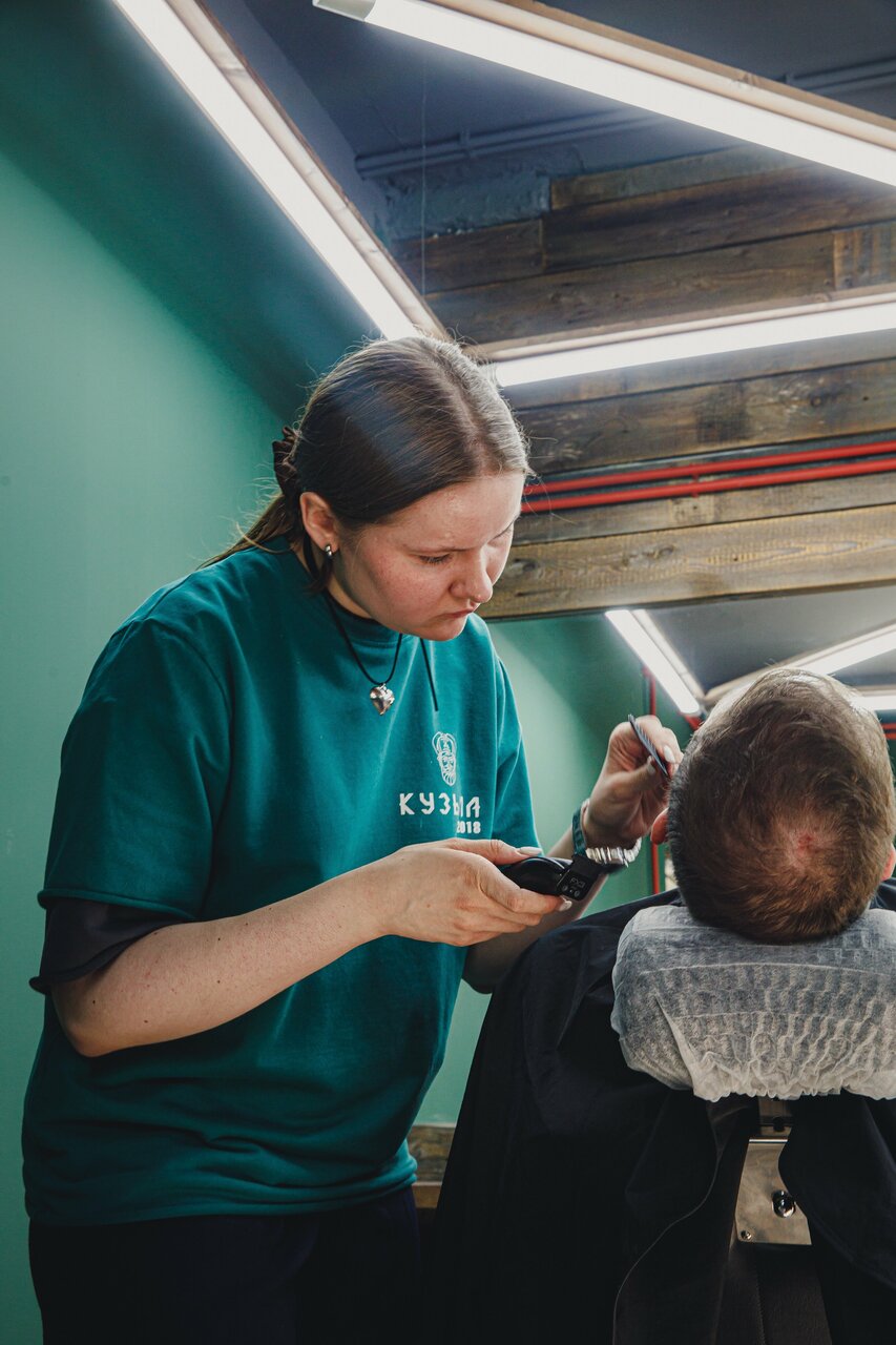 - Высокое мастерство барберов (Левана, Анжелики, Полины, Кузьмы, Ильи)
