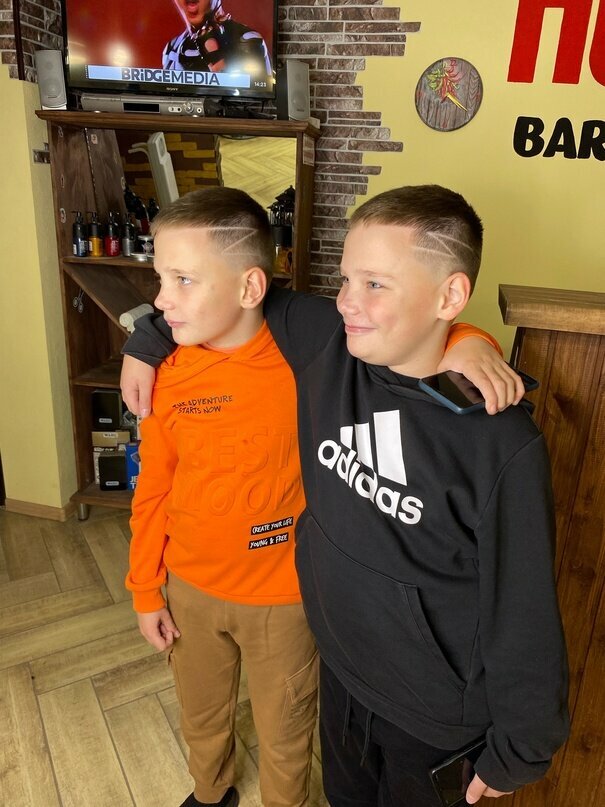 Стрижка мужская + стрижка детская с 5 до 14 лет+ Стрижка ножницами, машинкой или другими предметами, мытье головы до и после стрижки, укладка премиальной косметикой