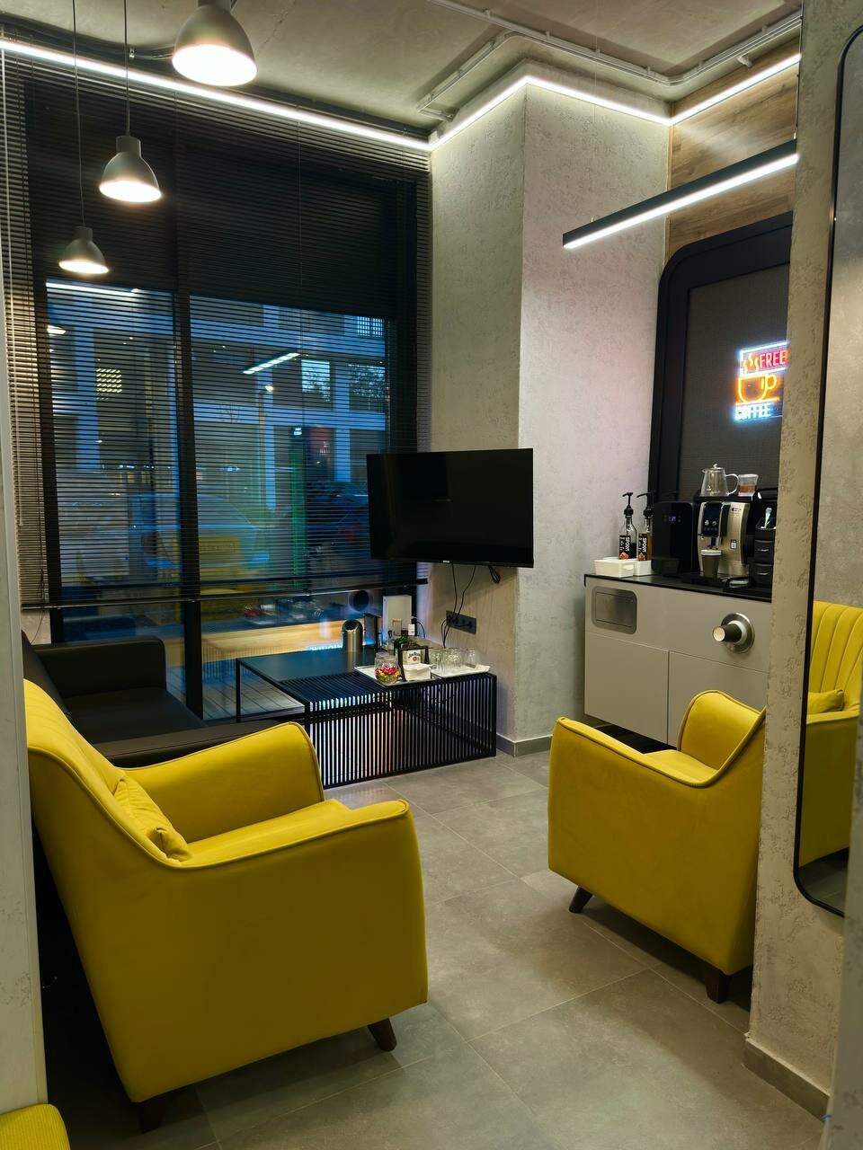 - Комфортная зона ожидания с диванами/креслами