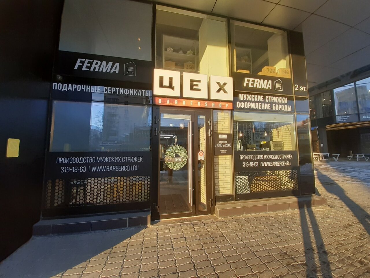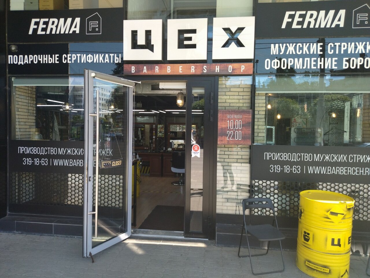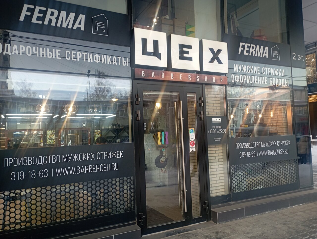 Барбершоп «Цех» находится в Екатеринбурге по адресу: улица Луначарского, 139. Работает ежедневно с 10:00 до 21:00. Для записи и консультаций доступны телефоны: +7 (343) 385-95-80 и +7 (343) 319-18-63.