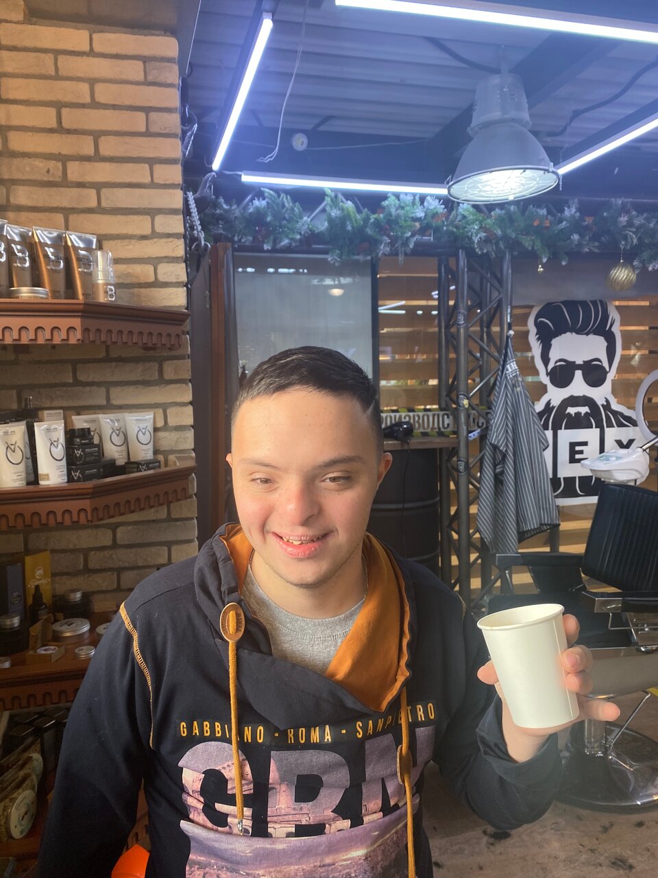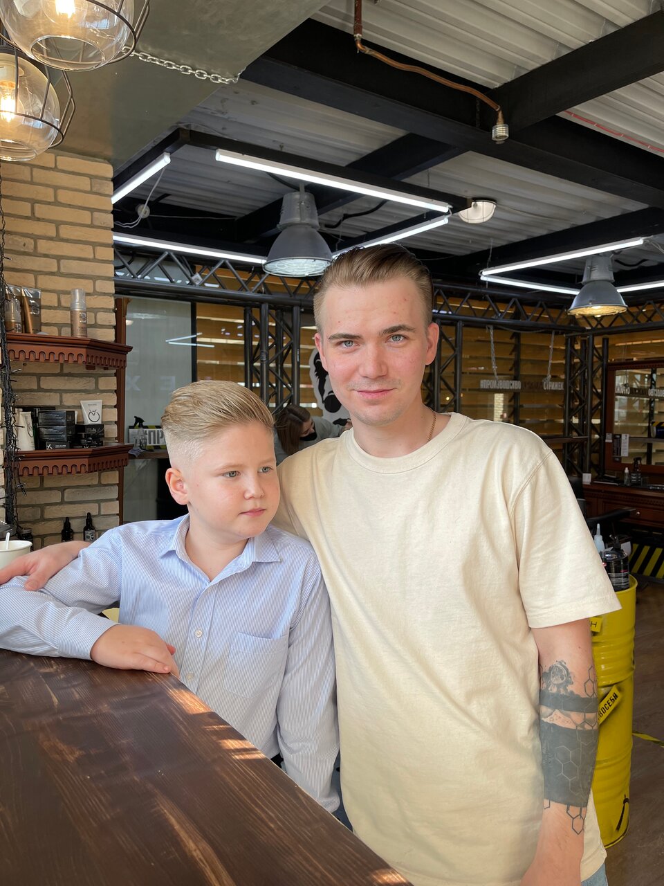 Огонь. Отличная стрижка, прекрасный барбер, офигенный хозяин. Ну а напитки- комплимент выше всех похвал. Ребёнок нашёл свою студию.. Дед причёску одобрил..
