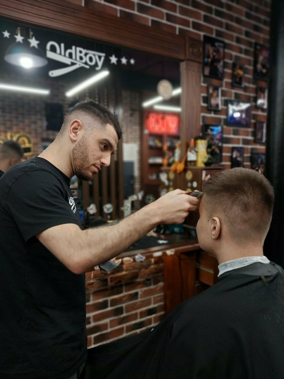 В Москве ходим стричься в Бритву, сын решил на даче попробовать сходить в Олд Бой в Электрогорске. Все прошло отлично, сын приходил на стрижку, заходила его забирать- интерьер и сотрудники понравились. Угостили кофе, детишки могут поиграть в РS ,думаю, взрослым тоже бы не отказали. Спасибо мастеру Карену за стрижку) не только хорошо постриг, но и,со слов сына, оказался приятным и юморным молодым человеком. Если совсем уж придираться- для меня была громковата музыка в салоне, но я сама по себе чувствительна к звукам) а так однозначно рекомендую