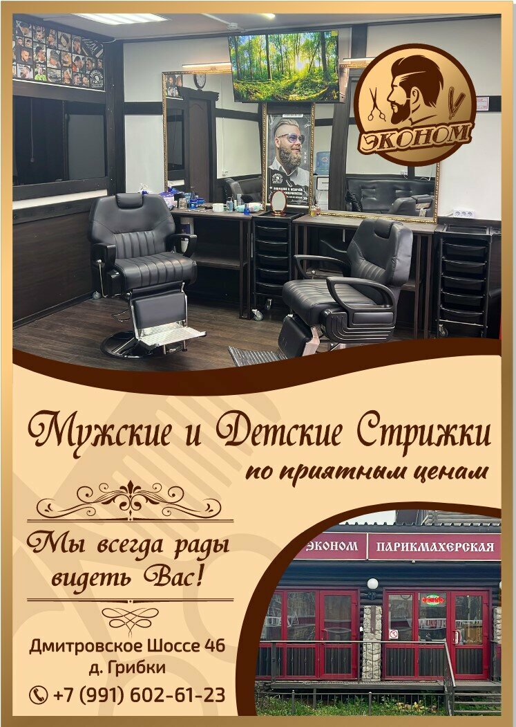 Информация о барбершоп Эконом в Грибках актуализирована в ноябре 2025 года: