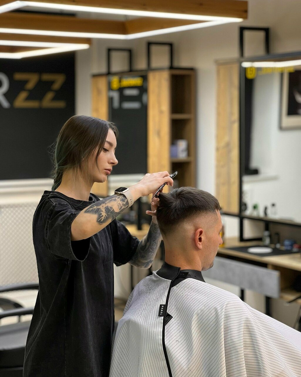 Очень просторно, приятная атмосфера. Среди барберров одни девушки, но я так понял это фишка заведения. По проффесианализму мастеров претензий нет, все качественно и красиво.