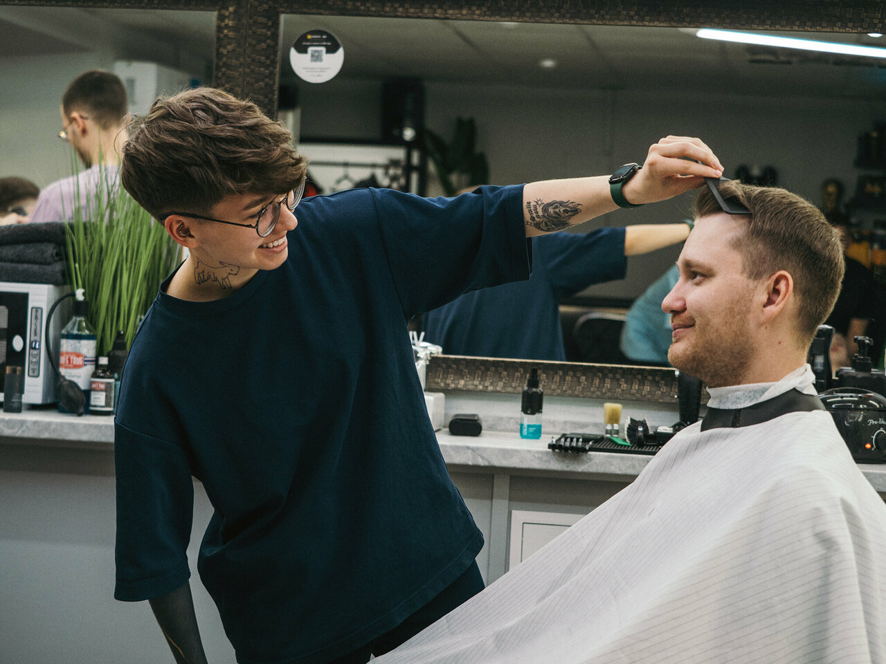 Посещал данный барбершоп 15.04.2023, стрижка + борода, первый поход, мастер Артём. Хочется отметить огромные для меня плюсы: 1) Мастер быстро понял, какую стрижку мне нужно из моих объяснений «на пальцах» 2) Очень внимательное отношение к деталям 3) Коррекция бороды с распариваетесь лица — это нечто из spa-салона 🙂 Почти уснул, настолько приятная процедура ) 4) 800 рублей за такую работу — это почти подарок от салона ) Мастер на меня потратил почти 2 часа 5) Теперь только сюда, даже не буду искать «что-то ещё» в других барбершопах