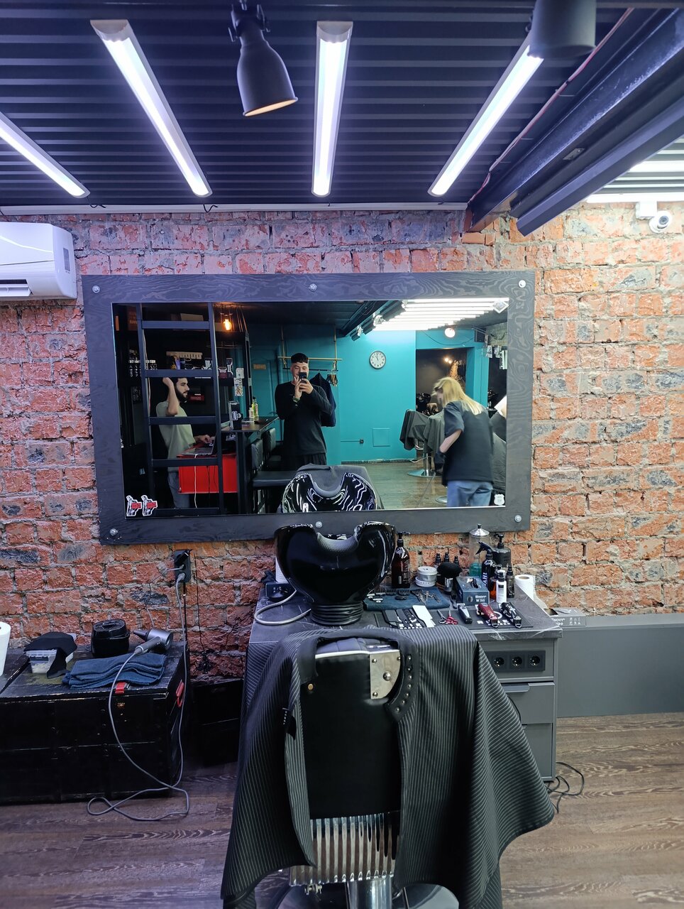 Персонал дружелюбный. Администратор предложил чай/кофе. Практически сразу приступили к стрижке. Атмосфера приятная: висят различные постеры, есть стол с настольным футболом. Все чисто — ничего плохого не заметил. Также плюс, что есть возможность записаться через интернет.