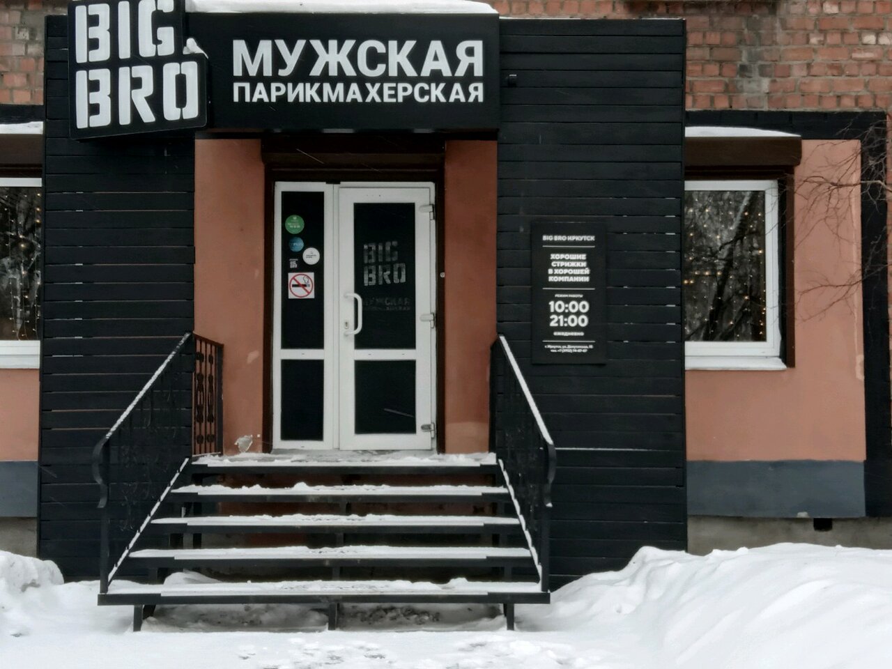 Барбершоп Big Bro работает ежедневно с 10:00 до 21:00. Для записи и консультаций доступны телефоны: +7 (3952) 74-87-87 и +7 (904) 119-73-89.
