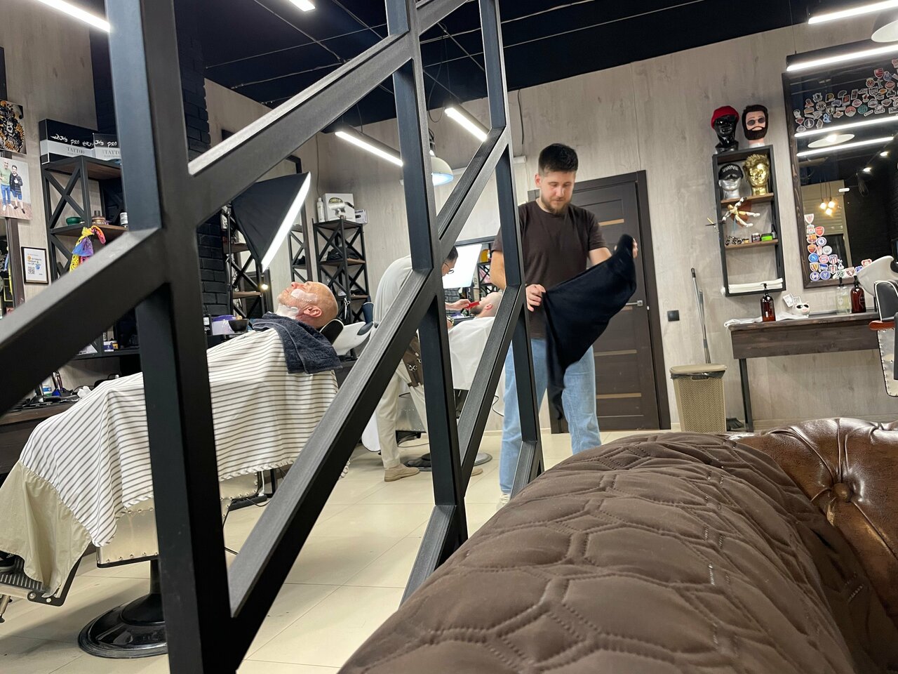 Атмосфера, барбера, как в кино попал, стружка не понравилась по началу, но я и попросил на свое усмотрение, пацаны сказали хорошо постригли, ну, за пострижку шишку, ставлю 5 звезд