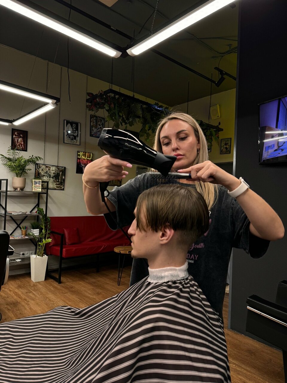 Приятная атмосфера, все новое, чистое; мастер постриг отлично, как заказывал; предложили кофе/чай с собой.
