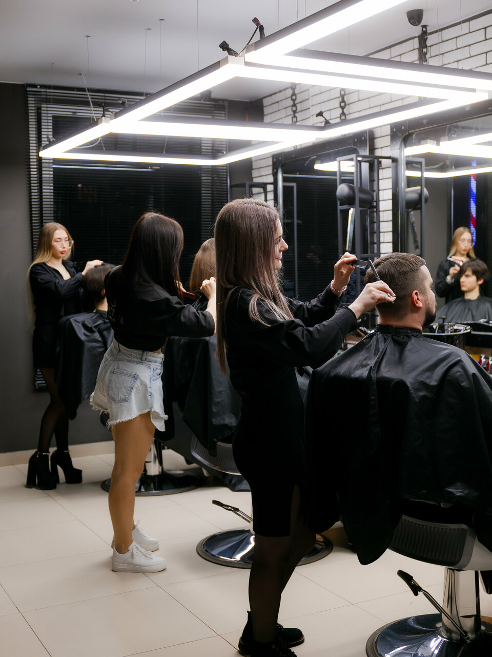 - Быстрое и качественное выполнение стрижки; Удобство для клиентов (муж и сын могут пойти вместе); Подбор индивидуального стиля; Стильное заведение; Приятная атмосфера