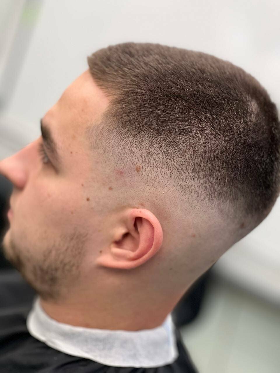 Мужская стрижка чуть ли не налысо, мастер видимо не слушает просьбы клиента