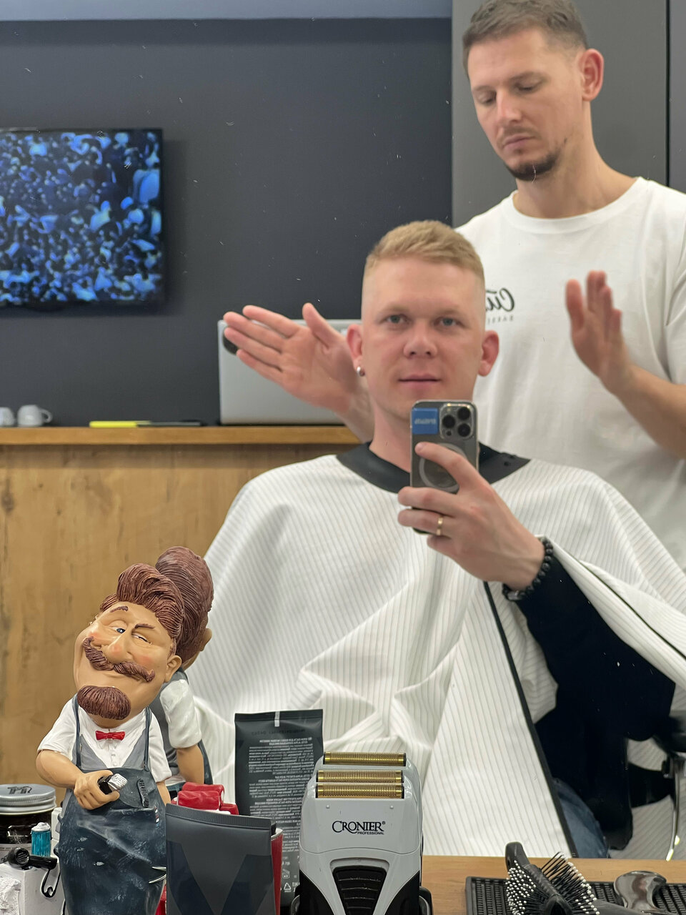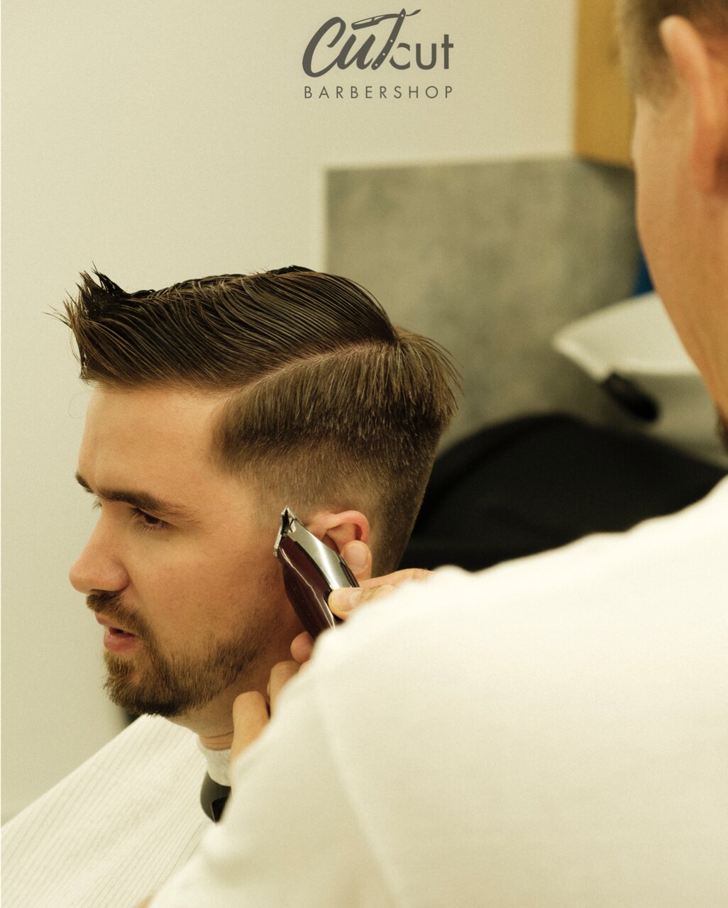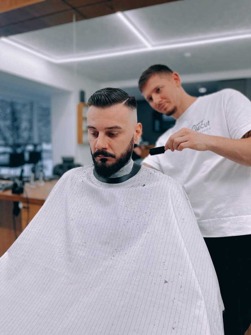 Мужскую стрижку в барбершопе Cutcut - наш барбер начинает с диагностики волос головы. Затем обсуждаются детали стрижки и предпочтения клиента.Во время стрижки барбер обращает внимание на каждую деталь, чтобы убедиться, что стрижка выглядит идеально