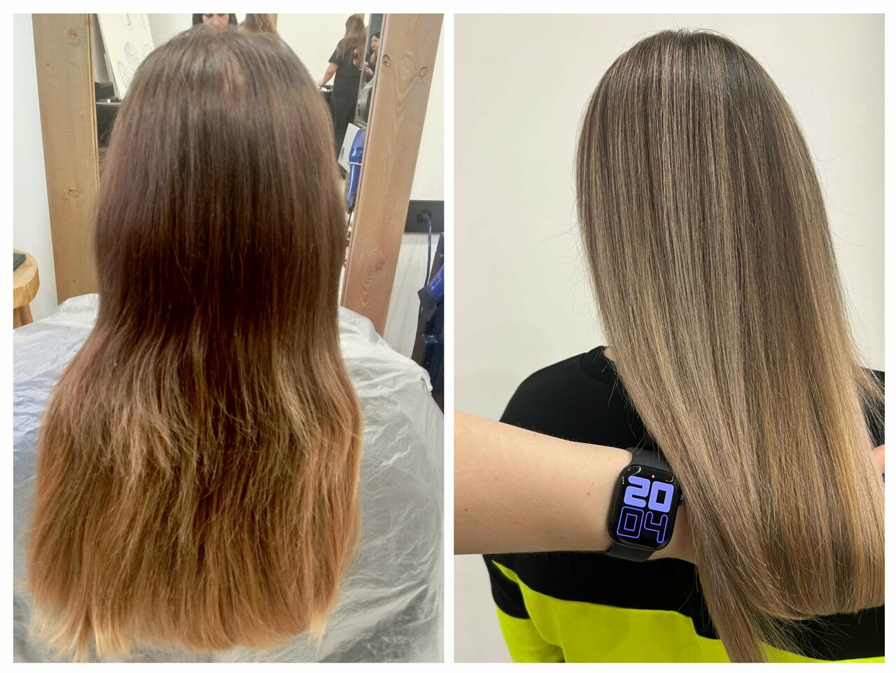 Качественная и профессиональная работа. Я просто в восторге от моей нового цвета волос они выглядчт прекрасно . Я никогда не думала, что мои волосы могут выглядеть так хорошо. Спасибо за вашу работу