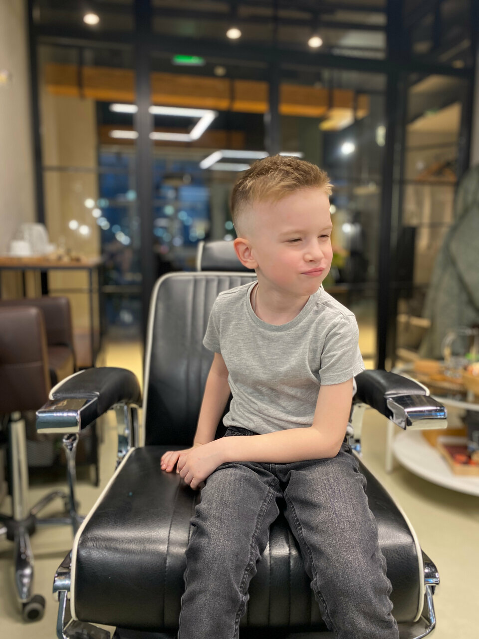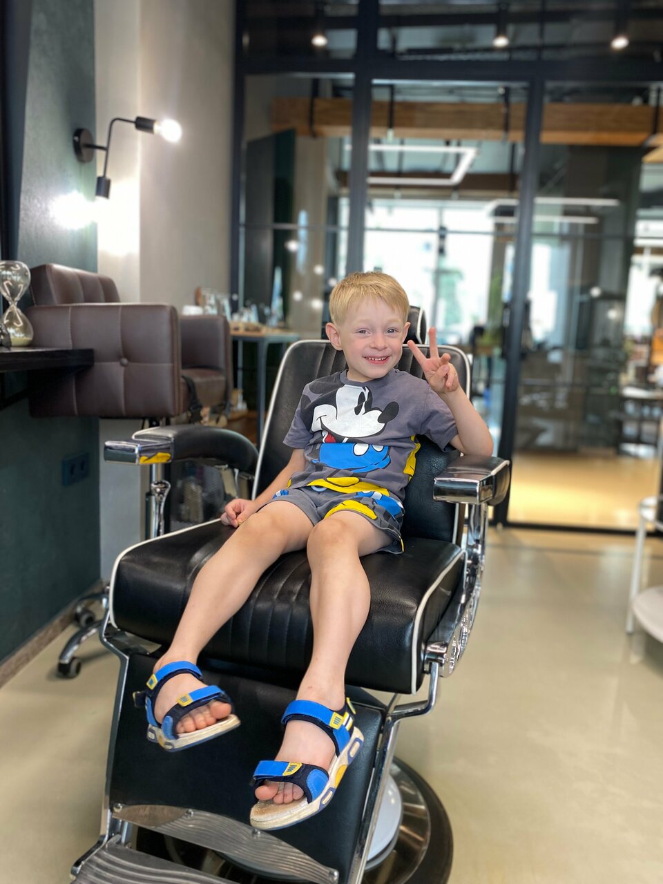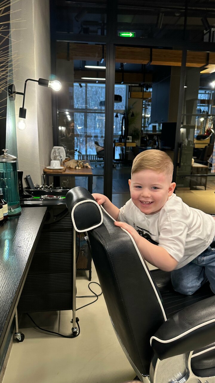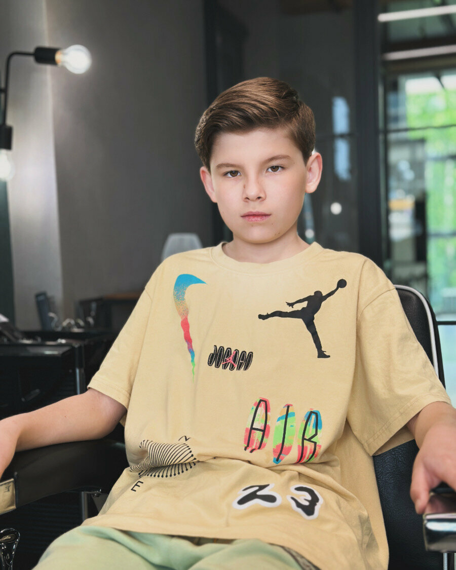 Стрижка как у папы — легко! Ухоженность важна в любом возрасте, позвольте сыну с ранних лет почувствовать себя настоящим мужчиной, окунувшись в атмосферу барбершопа. Процедура стрижки для детей от 4 до 12 лет включает в себя мытье головы, стрижку с и
