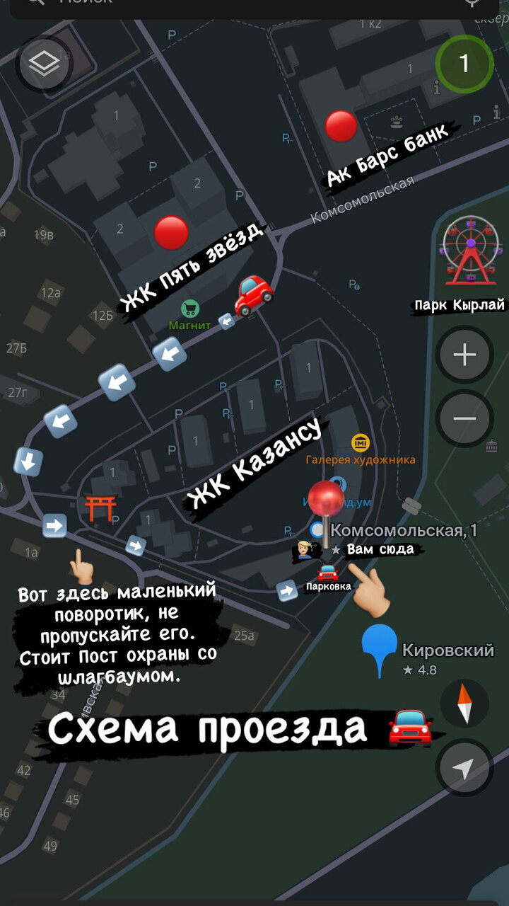 - Полный адрес: Республика Татарстан, Казань, Комсомольская улица, 1