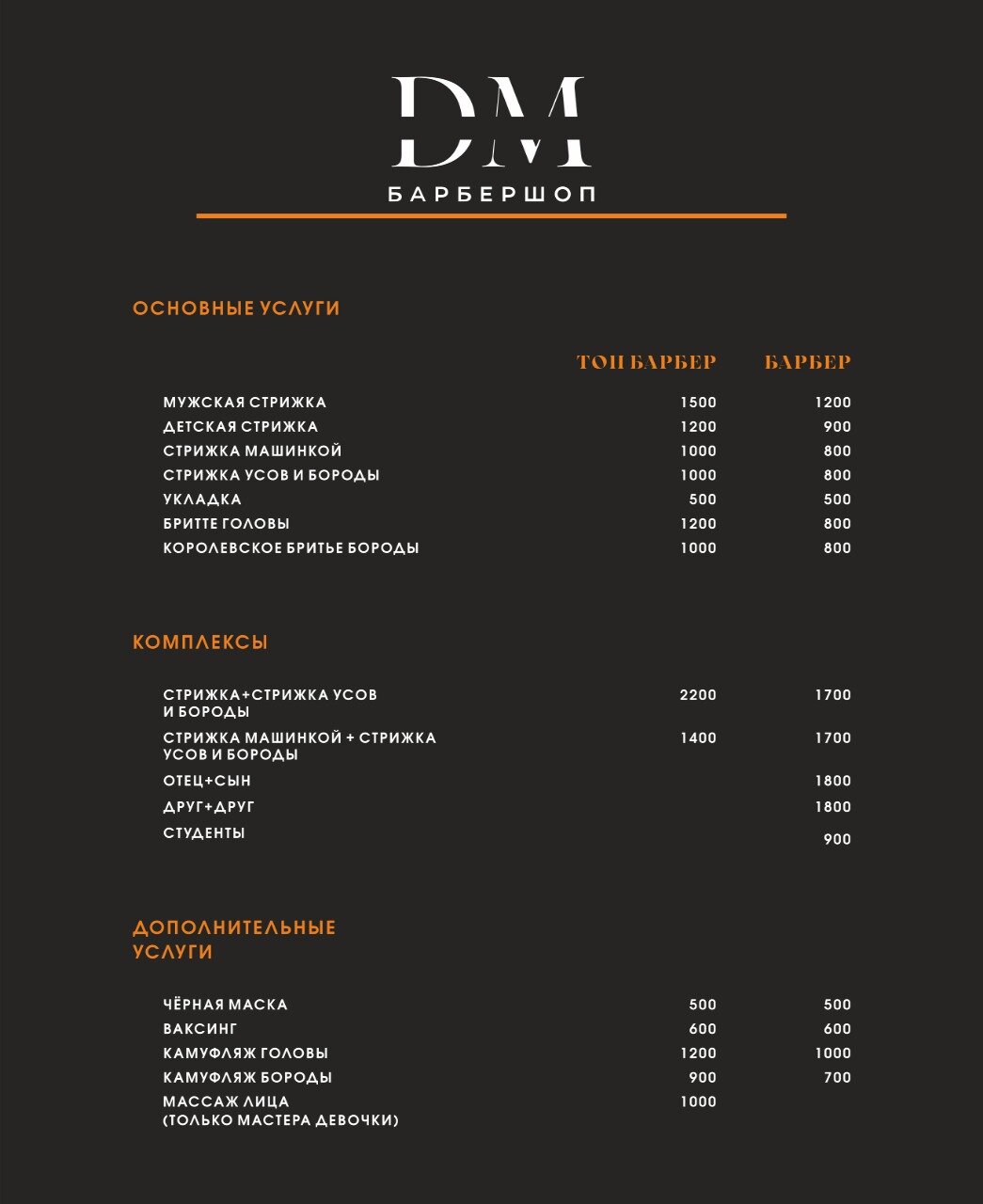 Скачать прайс-лист DM Barbershop на ноябрь 2025 года