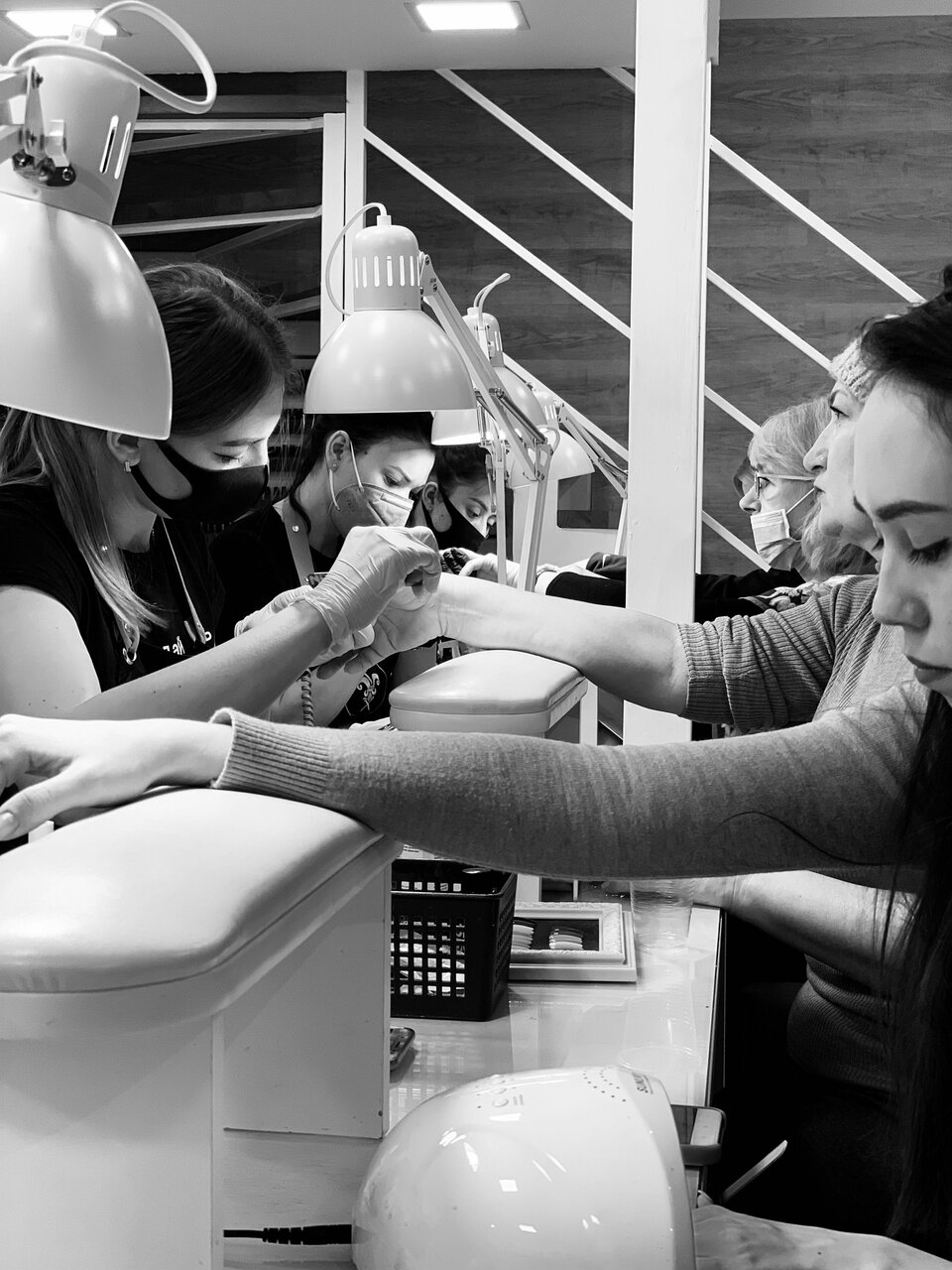 - Комфортные условия (вкусный кофе, возможность делать маникюр и педикюр в две руки)