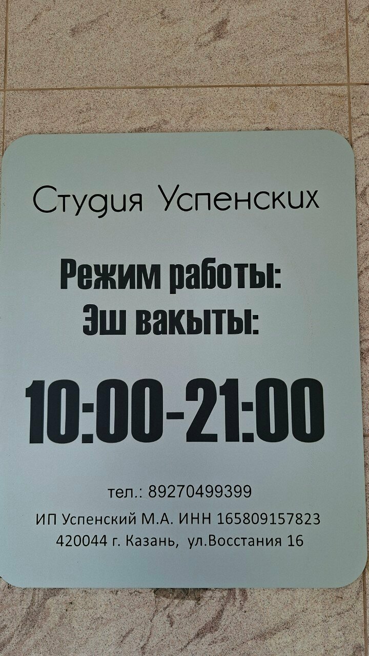 Информация о барбершоп Студия Успенских в Казани актуализирована в ноябре 2025 года:
